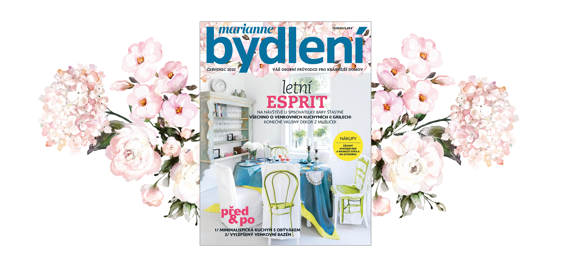 Červencové Marianne Bydlení s uklidňující várkou designu, interiérů, nápadů a proměn je právě na stáncích nebo online.