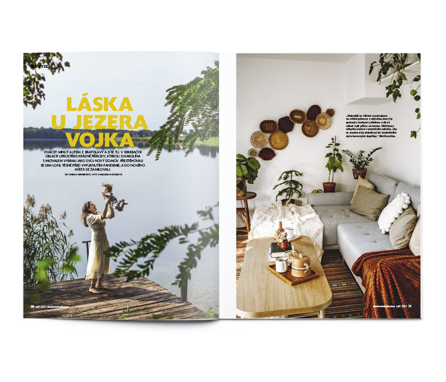 Trochu na samotě a trochu mezi lidmi. U jezera Vojka nedaleko Bratislavy stojí nový montovaný domek, kde vládne severský romantismus a barva kari.