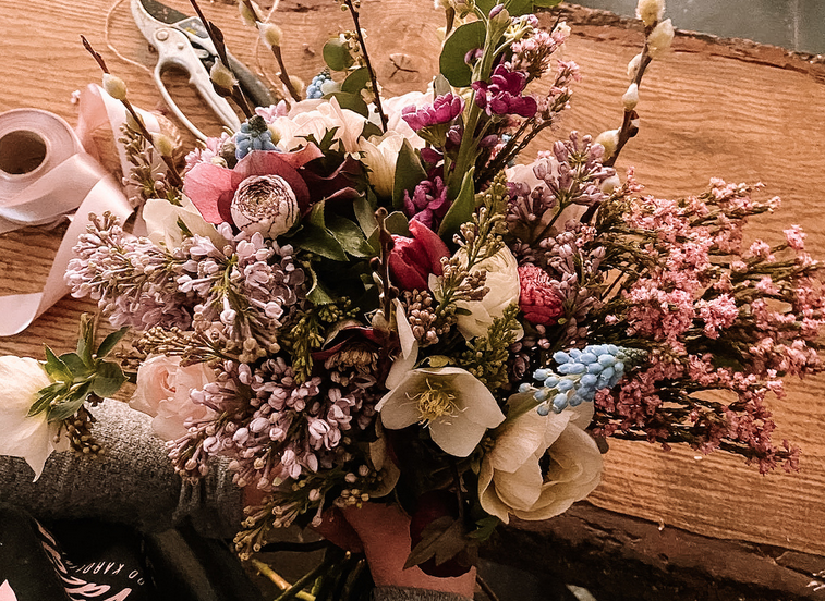 Nejdříve si nachystáme jarní květiny. Nebojte se popustit uzdu fantazii a vyzkoušet i méně obvyklé kombinace. Jarní kytice nemusí být jen žluto-modrá!! Trendy je teď pudrová, bílá, pastelová fialová a růžová. Doplňte výrazným prvkem, jako je například světle modrá nebo vínová. Svěžím a jarním dojmem bude kytka ve váze působit i díky konkrétním druhům jarních květin. Určitě doporučuji čemeřici, jejíž květ má krásný hvězdicový tvar a bledě modrý Modřenec. Tulipány jsou jarní klasika, zkuste použít třepenité, které nejsou tak okoukané. A mé nejoblíbenější jsou kočičky. Ty dodají jarní šmrnc i obyčejné kytici růží. Většinou platí, že ty nejhezčí kombinace jsou z kytek, které k sobě na první pohled vůbec neladí. Já sama nepřidávám do kytic zeleň, kromě Eukalyptu. Pak je kytice krásně barevná a pestrá, ale samozřejmě je trochu nákladnější, protože objem vytváří jen samotné květy.