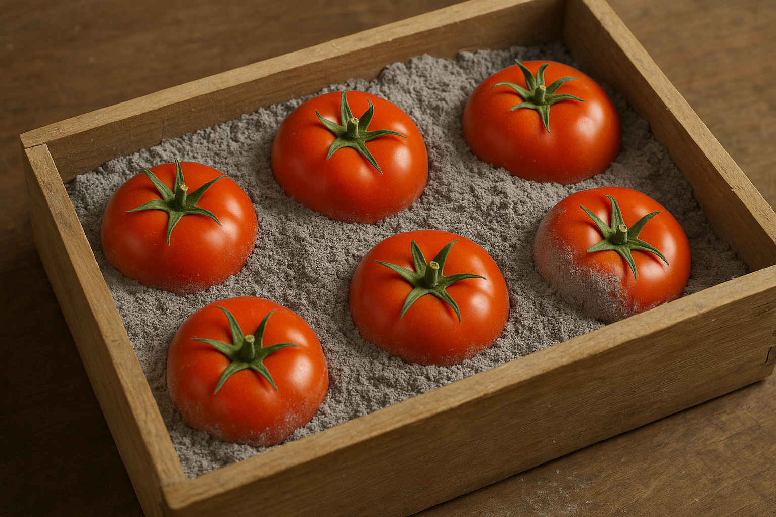 Klíčový je výběr vhodných rajčat. Použijte pouze zdravé, pevné a neotlačené plody, které jsou právě na vrcholu zralosti, ale ne přezrálé. Poškozená rajčata by se v popelu rychle zkazila. Dalším krokem je příprava popela. Ideální je čistý a zcela suchý popel z tvrdého dřeva. Ujistěte se, že v něm nejsou žádné zbytky uhlíků. Větší kusy je proto dobré prosít přes síto. Jako nádobu můžete použít kartónovou krabici, dřevěnou bedýnku nebo plastový kontejner. Důležité je, aby nebyla vzduchotěsně uzavřená, proto plastovou nádobu nechte pootevřenou nebo ji překryjte prodyšnou látkou. Na dno nádoby nasypte asi tří až pěticentimetrovou vrstvu popela. Na ni opatrně naskládejte rajčata, ideálně stopkou nahoru, a dbejte na to, aby mezi nimi byly mezery. Poté plody kompletně zasypte popelem a pokračujte ve vrstvení, dokud nenaplníte celou nádobu. Poslední vrstva musí být opět popel, který všechna rajčata důkladně zakryje. Nádobu uložte na chladné, suché a tmavé místo, kde se teplota pohybuje ideálně mezi 10 a 16 °C. Nezapomeňte rajčata jednou za dva až čtyři týdny zkontrolovat. Pokud by popel navlhl, je třeba ho vyměnit za nový. Při správném postupu vám takto uskladněná rajčata mohou vydržet čerstvá i několik měsíců.