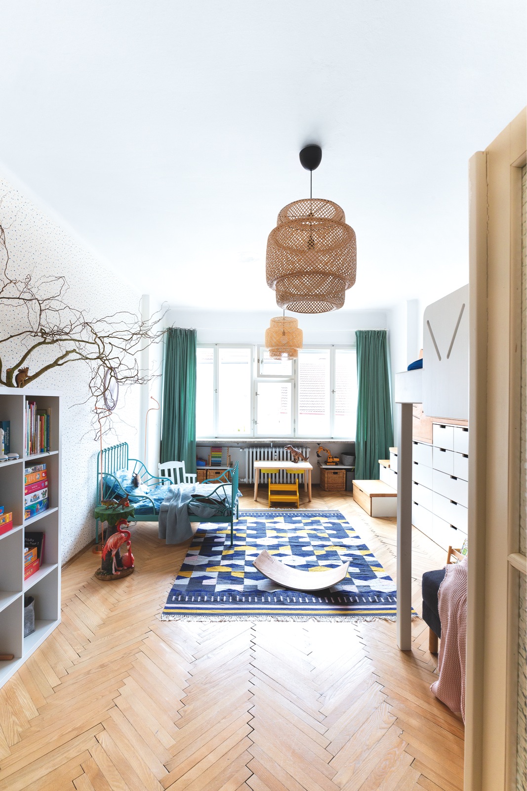 Kdybyste 3 + kk v prvním patře novostavby na pražském Žižkově navštívili před rokem, jen stěží byste tu našli plnohodnotný dětský pokoj. Pětiletý Jáchym se přes den dělil o uzounký pokojík s tatínkem, který ho používal jako pracovnu, a dvouletá Karin měla postýlku u rodičů v ložnici. Jak vypadá pokoj dnes?