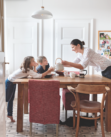 Když se rodina Tesařových pustila před pěti lety do renovace svého domova, nejdříve přišly na řadu místnosti, které křičely po rekonstrukci nejnaléhavěji. Až když byly v pořádku, začalo se řešit, co s kuchyní. Jinými slovy, předtím bylo hlavní, že je kde vařit a stolovat. Postupně ale bylo čím dál více zřejmé, jak odlišná je kuchyň v celkovém pojetí domu, a nastal čas na radikální změnu. Pro designérku Pavlu Kirschner byla jedním z odrazových můstků původní, sto let stará dlažba. K atmosféře a historii domu využila potenciál toho nejlepšího, co v kuchyni zůstalo ještě z dávných časů – skvěle zachovanou dlažbu, která vypadá, jako by ji přivezli rovnou z pece. Udělat během rekonstrukce krok do minulosti ale bývá riskantní, protože přílišné historizování může sklouznout ke kýči a patosu. To ovšem není tento případ.