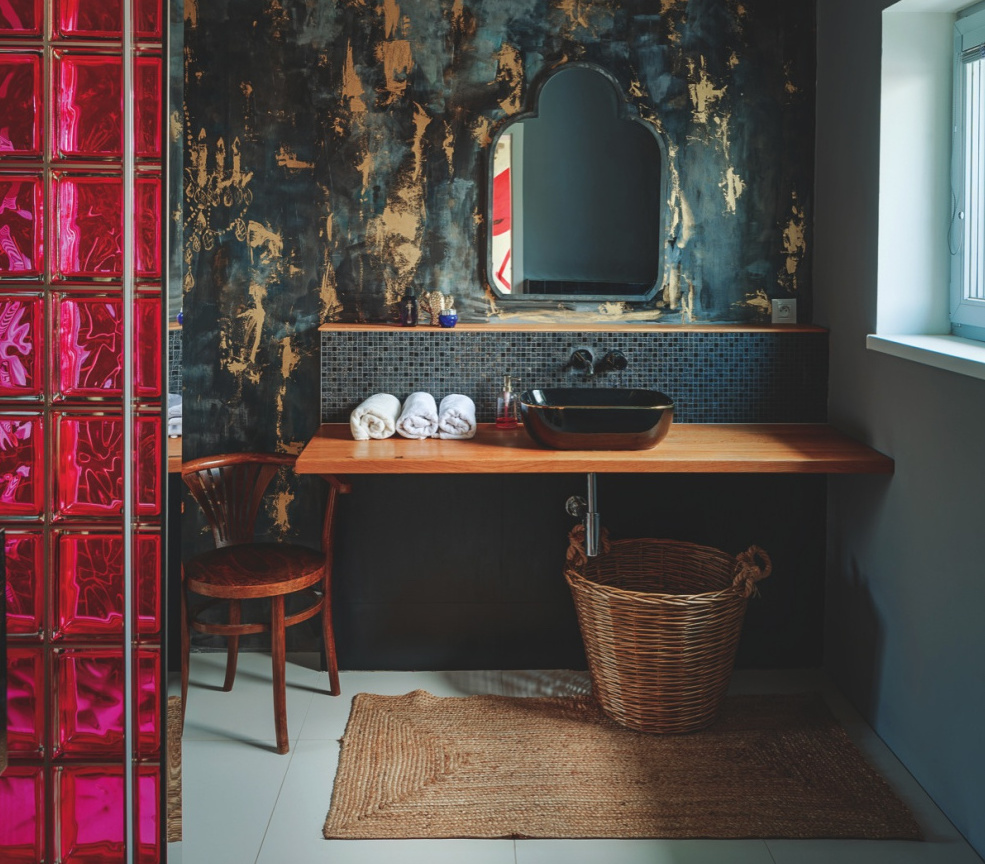 Odvážná proměna dřív fádní koupelny: Co s interiérem udělala černá, zlatá a růžová
