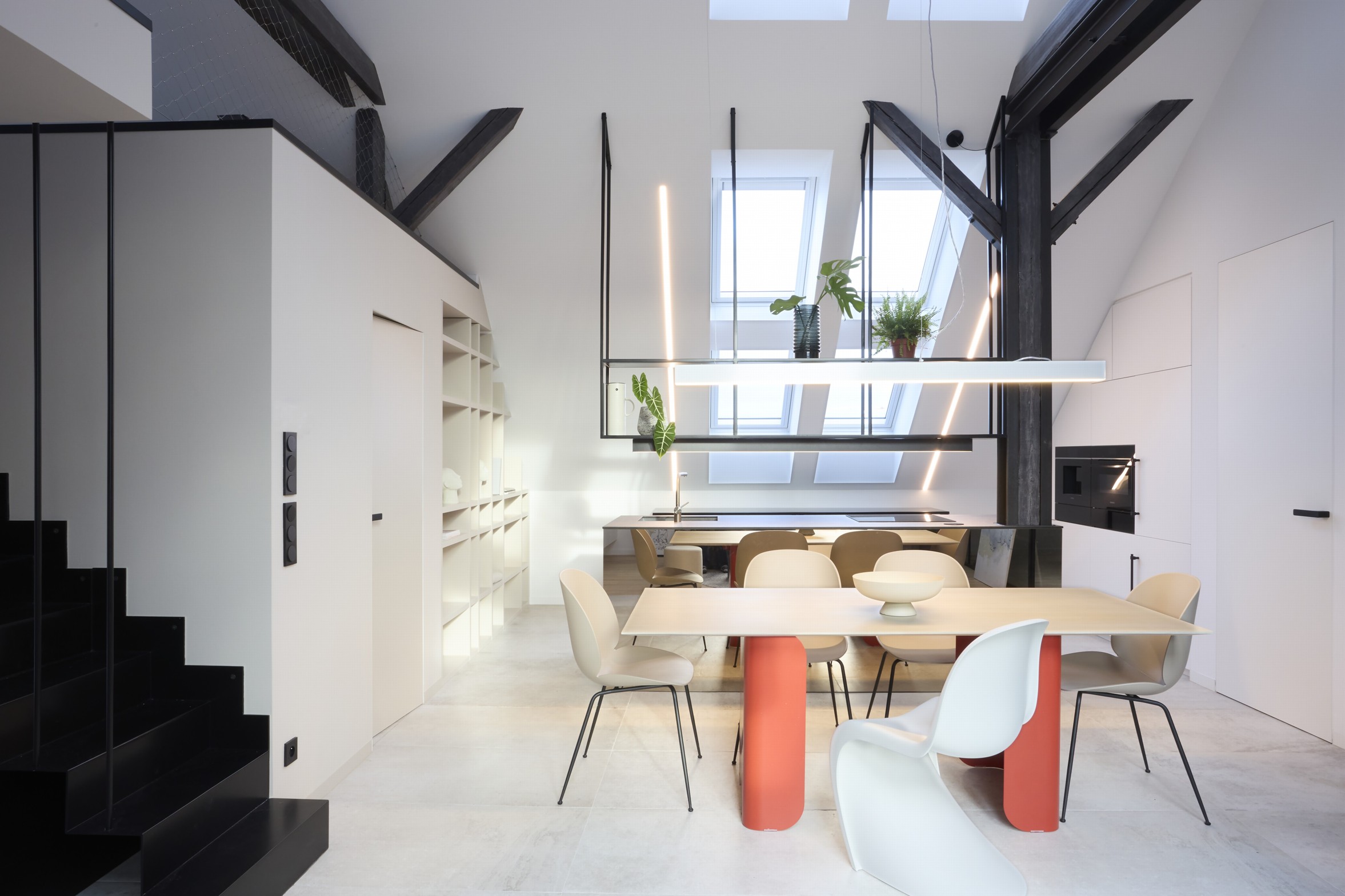 Tmavá a nevyužitá půda se proměnila ve světlý a vzdušný ateliér, který rozšiřuje rodinné bydlení o prostor pro práci, relaxaci i budoucí dětský pokoj. Architektka Markéta Daňková vsadila na kontrast původních trámů, moderní oceli a světlých minimalistických prvků. Výsledek? Nadčasový interiér s variabilním využitím.