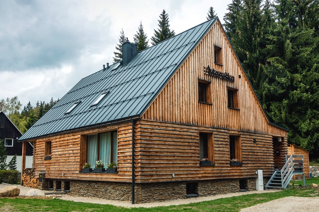 „Musím říct, že na řešení exteriéru i vnitřních dispozic jsme se s rodinou shodli na první dobrou. Ani rozsah prací nebyl otázkou, chalupa nevyhovovala dnešním stavebně technickým požadavkům, bylo třeba udělat novou tepelnou izolaci, střechu, okna a přizpůsobit vnitřní dispozice. Výsledek je následující: v suterénu je malé spa a technické zázemí, v prvním nadzemním podlaží bydlí rodina a v podkroví jsou tři apartmány: z každého z nich vedou schůdky do vlastní spací kóje pod střechou. V původních návrzích jsme například měli výraznější barevné vyznění či více dřeva v ubytovacích prostorách. Ale výsledek se nám i bez těchto drobností moc líbí, je to čisté, jednoduché a hlavně praktické. Chápu, že Lucie se čtyřmi dětmi nebude leštit ani turistické známky, ani vázičky na policích.“