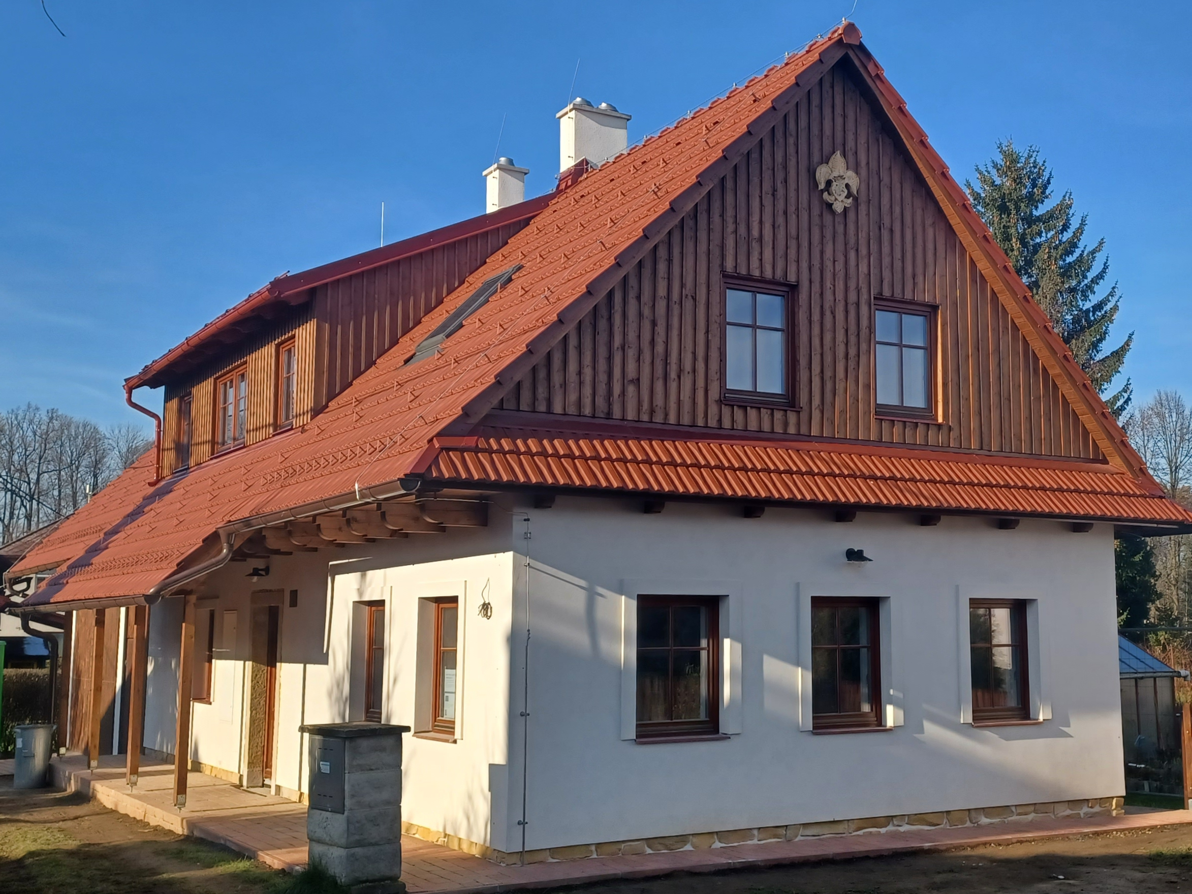 Když padlo rozhodnutí klubovnu kompletně zrekonstruovat, skauti věděli, že je čeká velká výzva. Roubená část byla ve špatném stavu. Nahradilo ji proto nové zdivo z cihelných bloků plněných minerální vatou, které přináší nejen lepší tepelný komfort, ale i nižší energetickou náročnost. Významnou součástí modernizace byla obnova střechy. Ta by ovšem nebyla možná bez darované keramické krytiny Tondach Traditon 11 od společnosti Wienerberger, včetně hydroizolační fólie Tondach FOL Mono. „Aktivity skautů ve Verměřovicích odpovídají našim strategickým cílům v rámci CSR aktivit, kdy každoročně věnujeme určitý objem materiálu na podporu neziskových projektů a znevýhodněných skupin. Proto jsme pro rekonstrukci skautské klubovny věnovali střešní krytinu Tondach,“ uvedla Kristýna Vobecká, ESG manažerka společnosti Wienerberger, která má CSR aktivity na starosti. I když hlavní část stavebních prací převzala odborná firma, první kroky udělali skauti sami. Ať už šlo o bourací práce, odstraňování starých konstrukcí, vyklízení nebo izolaci. Víkend co víkend se členové i rodiče scházeli a krok po kroku posouvali klubovnu blíž k novému začátku.