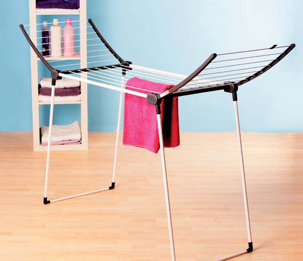 Viva Dry Balance má sušící plochou 16 metrů, a přitom se pyšní lehkou konstrukcí. Je ideálním pomocníkem nejen pro domácí, ale i venkovní použití – je totiž odolný proti UV záření i korozi, tudíž už se nemusíte bát toho, že rezivějící části zanechají stopy na prádle! Kompaktní rozměry pak umožňují snadný průchod dveřmi i s rozloženým sušákem, takže je konec i otlučeným zárubním. Nadzvednutá boční křídla zajišťují pohodlné sušení i delšího prádla a jsou navíc opatřena bezpečnostním zámkem.