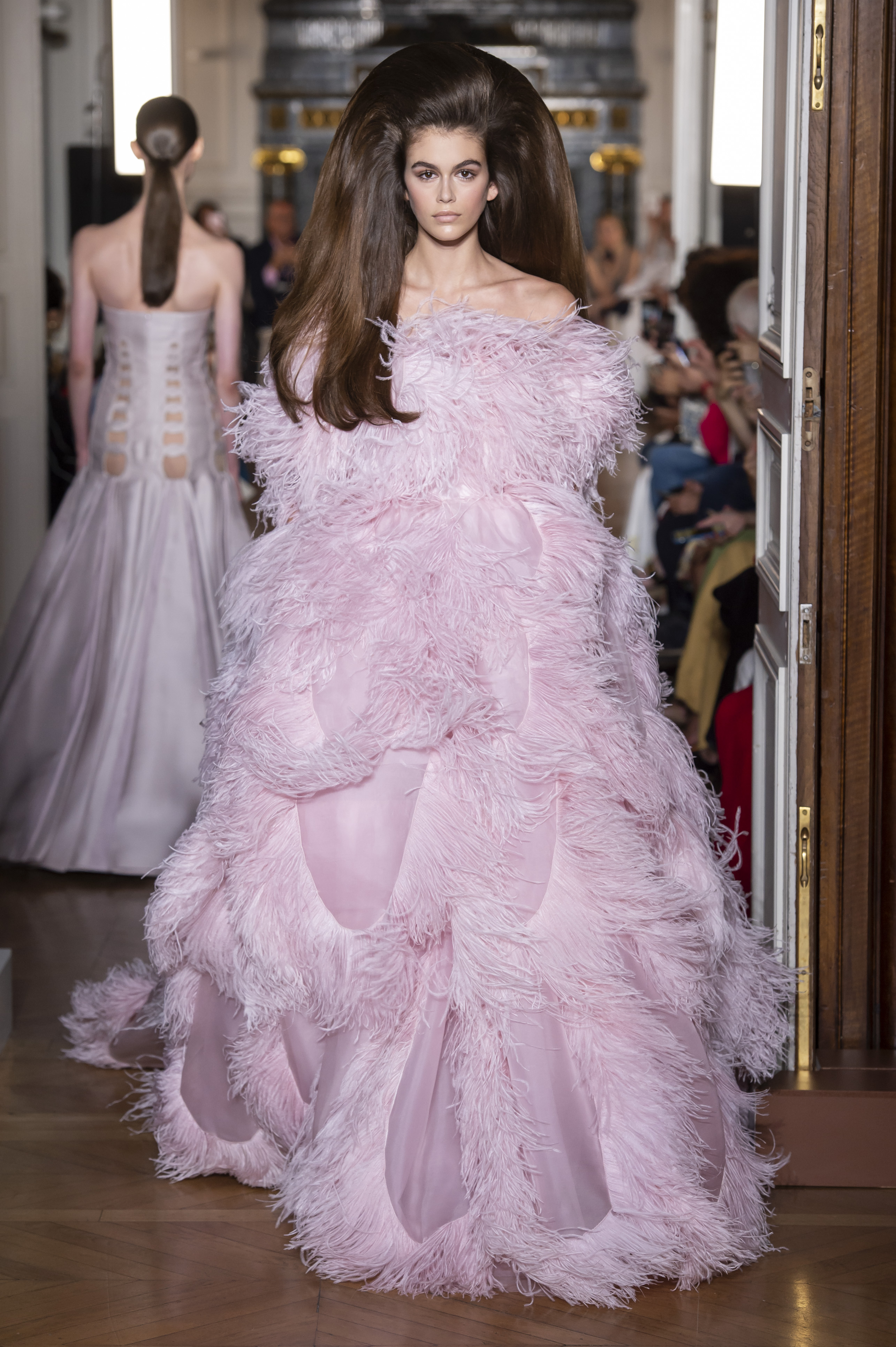 Tyto růžové šaty s peříčky od Valentina vás na internetu nemohly minout. V roce 2018 se totiž staly populárními hned dvakrát. Poprvé, když je Kaia Gerber vynesla na haute couture fashion weeku v Paříži, a podruhé, když je oblékla Lady Gaga na premiéru filmu Zrodila se hvězda na benátském filmovém festivalu. Oba momenty se bezpochyby zapsaly do historie.
