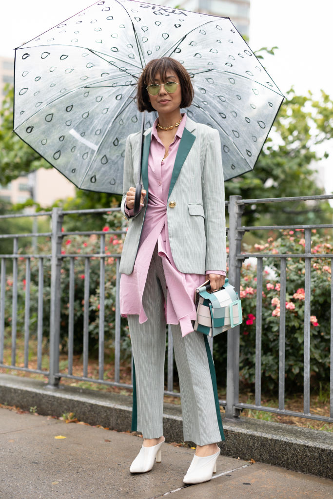 Jednobarevného outfitu se vůbec nemusíte bát. Když ho ale rozbijete kabelkou v úplně jiné výrazné barvě, bude působit paradoxně ještě kompaktněji.