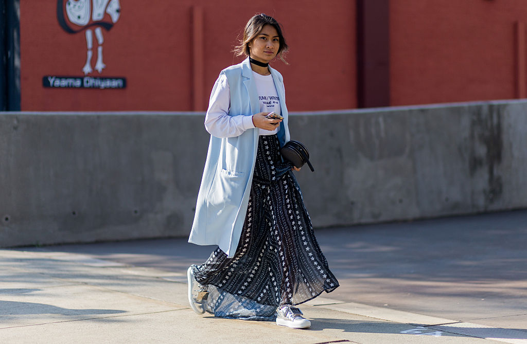 Zatím je tak teplé počasí, že můžete místo kabátu klidně sáhnout po vestě v mint barvě. Pokud je na vás mintový odstín až moc světlý, vyrovnejte to černou sukní.