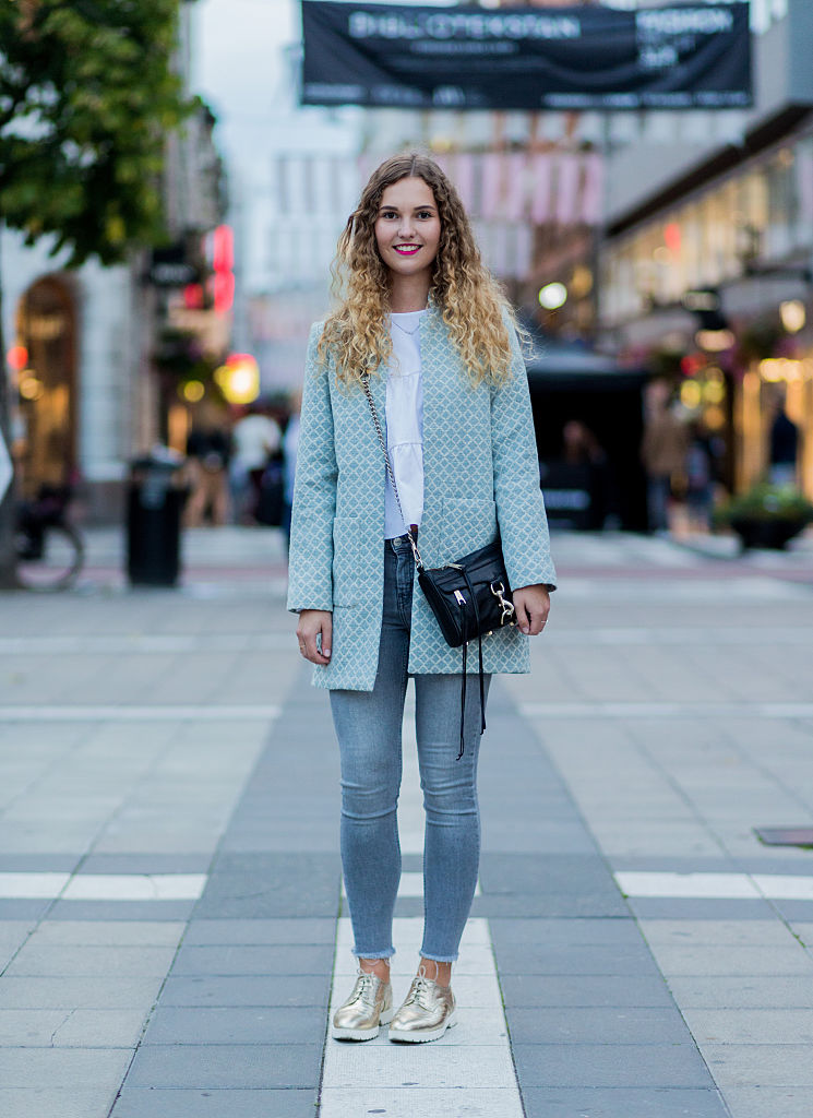 Mint a zlatá k sobě jdou skvěle! Ať už se rozhodnete pro zlaté boty nebo kabelku, zbytek outiftu by už ale měl být jednoduchý. Bílá halenka a džíny a můžete vyrazit třeba do kina s kamarádkou.
