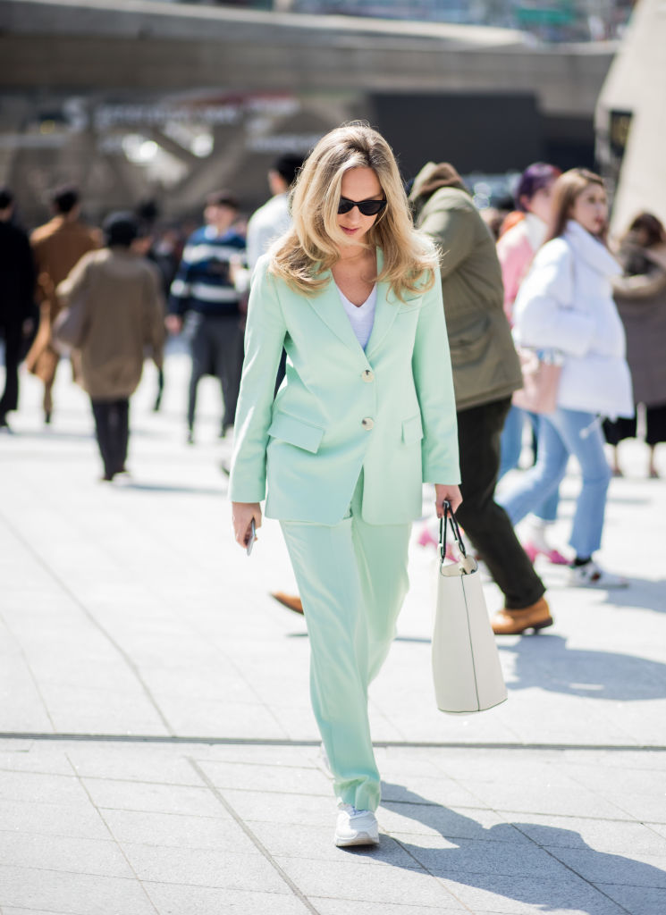 Pokud se nějaká barva k mintové skutečně hodí, je to bílá. Proto kombinací mintového kostýmu, bílé kabelky a bílých tenisek rozhodně nic nezkazíte...
