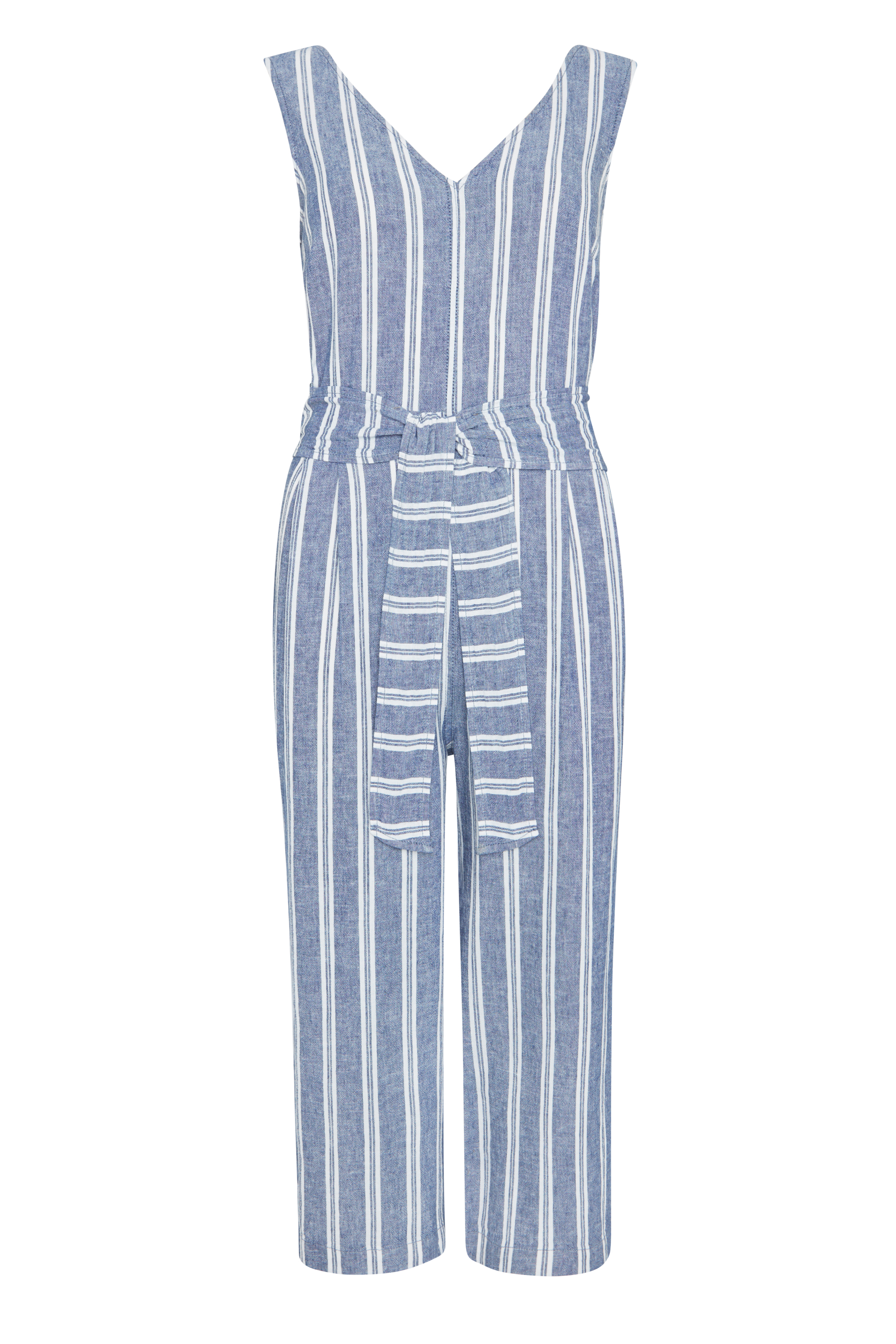 Modrobílý pruhovaný lněný overal, F&F, 499 Kč