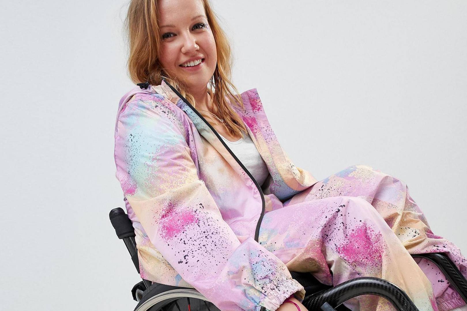 Chloe Ball-Hopkins je britská paralympiončka a sportovní reportérka na BBC Bristol. Před několika měsíci poslala ASOSu e-mail, v němž žádala, aby byla jejich móda dostupná pro všechny. Chloe přišla s nápadem nepromokavého kompletu pro vozíčkáře. Taková praktická, ale zároveň stylová kombinéza by se jí totiž byla bývala hodila na deštivém Splendour Festivalu v minulém roce. Nakonec jí ASOS vyhověl a před pár dny společně představili tuto novinku. Ve photoshootu figuruje sama Chloe a kombinéza je k pořízení za 50 liber.