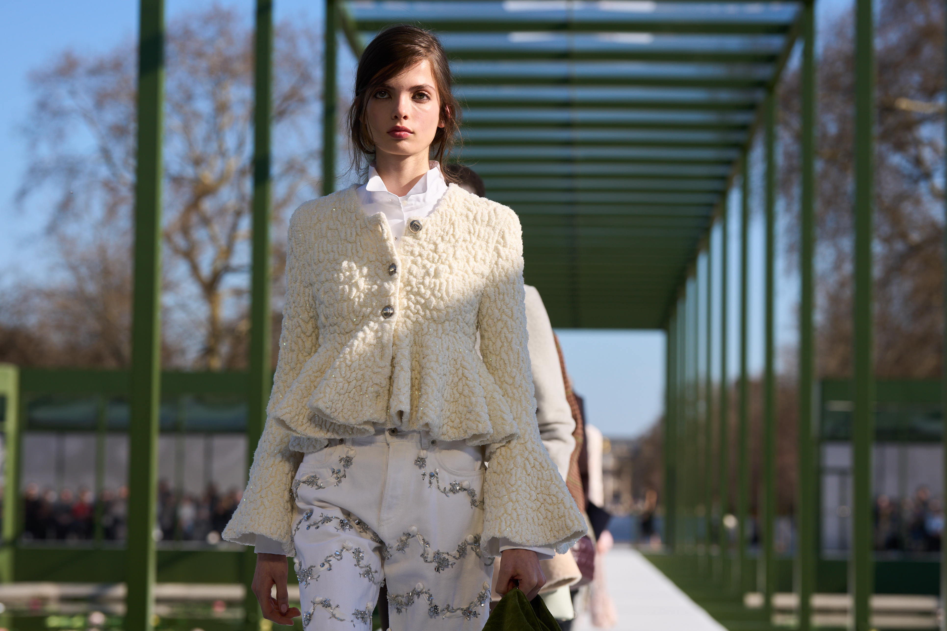 Samostatnou kapitolou pařížského fashion weeku byla přehlídka módního domu Christian Dior. Ta patřila k jedněm z nejočekávanějších, tím spíš, když pod vedením Jonathana Andersona vznikla nová estetika a jeho první kolekce ready to wear i nedávno uvedená haute couture sklidily nadšené ohlasy. Tentokrát se přehlídka odehrávala venku v parku Jardin des Tuileries, kdy tmavě zelená konstrukce ve tvaru osmiúhelníku obklopovala jezírko poseté lekníny a nad ním se po mole procházely modelky v okouzlujících outfitech. Nechyběly květiny, puntíky, romantické volány, sáčka rozšířená u pasu, ale ani kožíšky, třásně, plisování či brokát. Nejen díky kolekci Dior je jisté, že jedním z velkých trendů letošního roku budou kamínky ozdobené džíny a kalhoty, ale také vypasovaná sáčka.