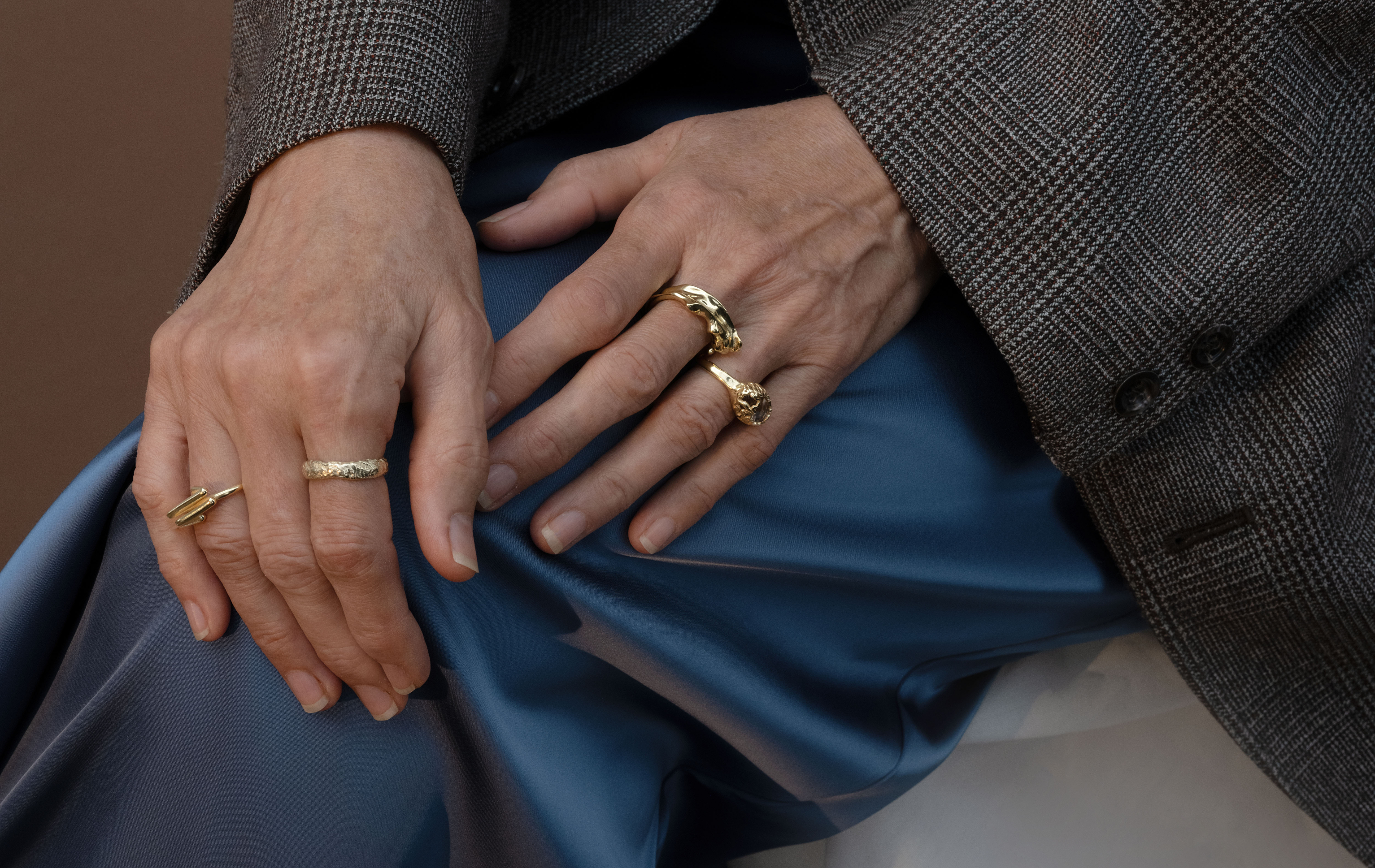 O vánoční inspiraci není nouze ani u šperkařky Elišky Lhotské. Její kolekci zlatých náušnic, náhrdelníků a prstenů nafotila fotografka Aneta Benediktová na fiktivní rodině žen, což symbolizuje sváteční mezigenerační setkání. „Zlato je jednou z materiálních věcí, které se nejčastěji dědí. I proto mě baví navrhovat naše kolekce tak, aby byly nadčasové. V ateliéru se snažíme vytvářet zlaté šperky, které obstojí i při několikageneračním nošení. Jsou záznamem naší doby i uložením rodinného kapitálu,“ vysvětluje designérka, proč si tento materiál pro tvorbu šperků oblíbila.