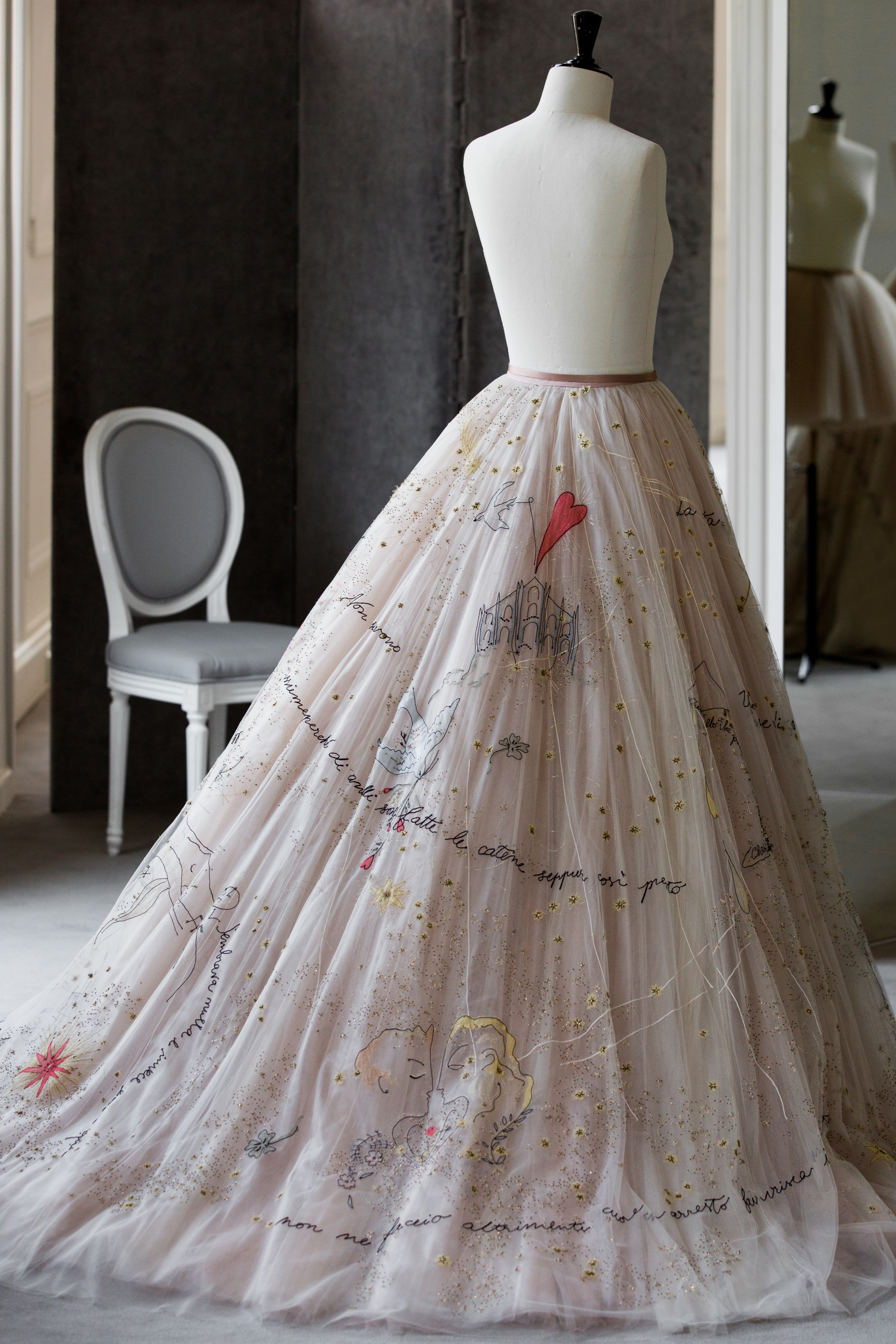 Vyhrála sněhobílá róba od Diora s dlouhou vlečkou a krajkovým body se stojáčkem. Navrhla ji Maria Grazia Chiuri. Tím to ale pro módní dům neskončilo, na svatební večeři se Chiara ukázala ve druhých o něco originálnějších šatech. Byly na nich vyšity úryvky textu písně, kterou jí manžel zpíval, když ji žádal o ruku. Nemůžeme se rozhodnout, které se nám líbí víc.