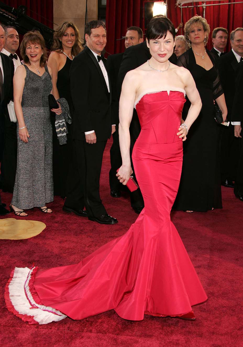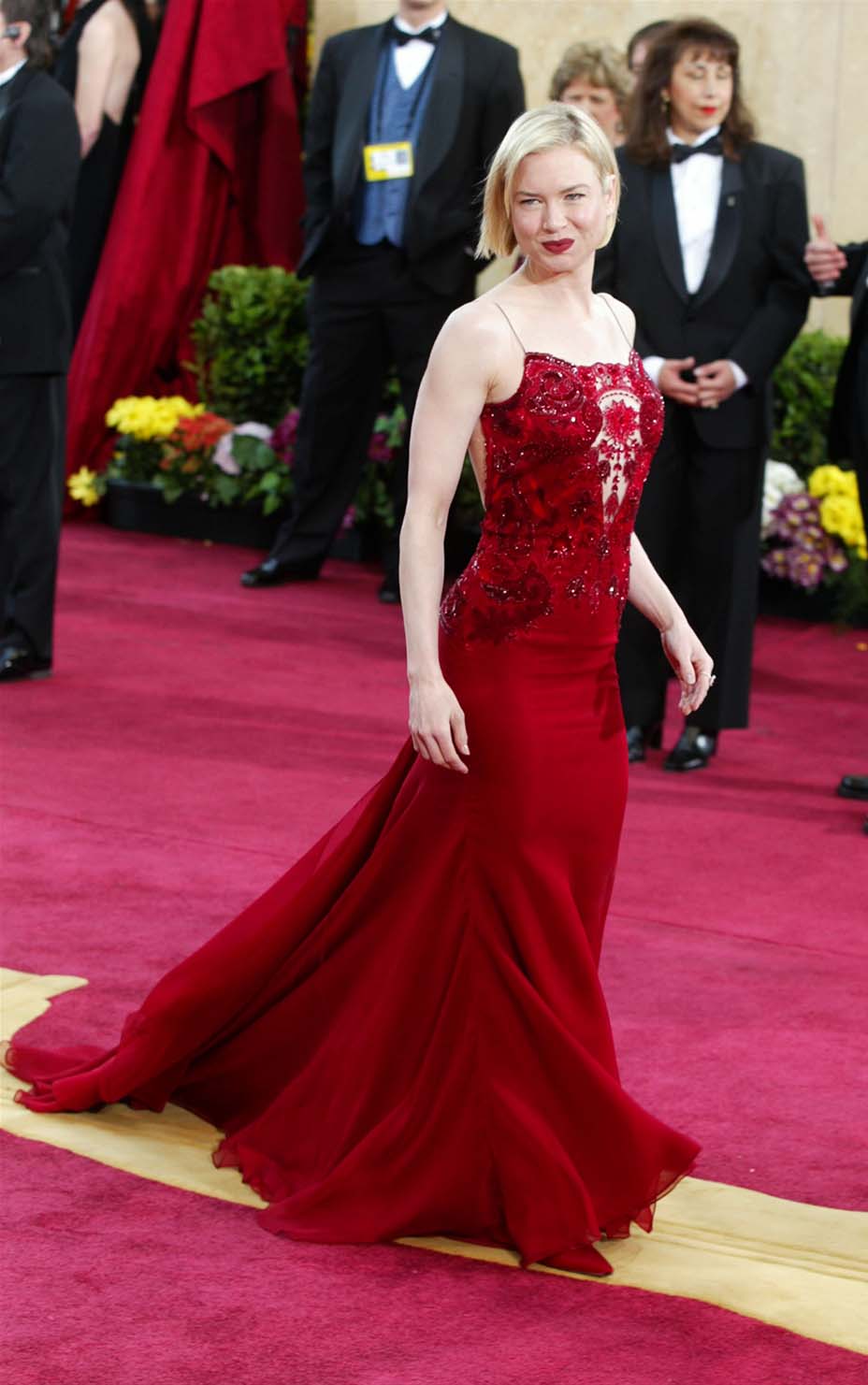 V roce 2013 si Renée Zellweger oblékla zlaté šaty od venezuelské návrhářky Caroliny Herrera. Šaty doplnila také o výrazně červené náramky od Van Cleef & Arpels.