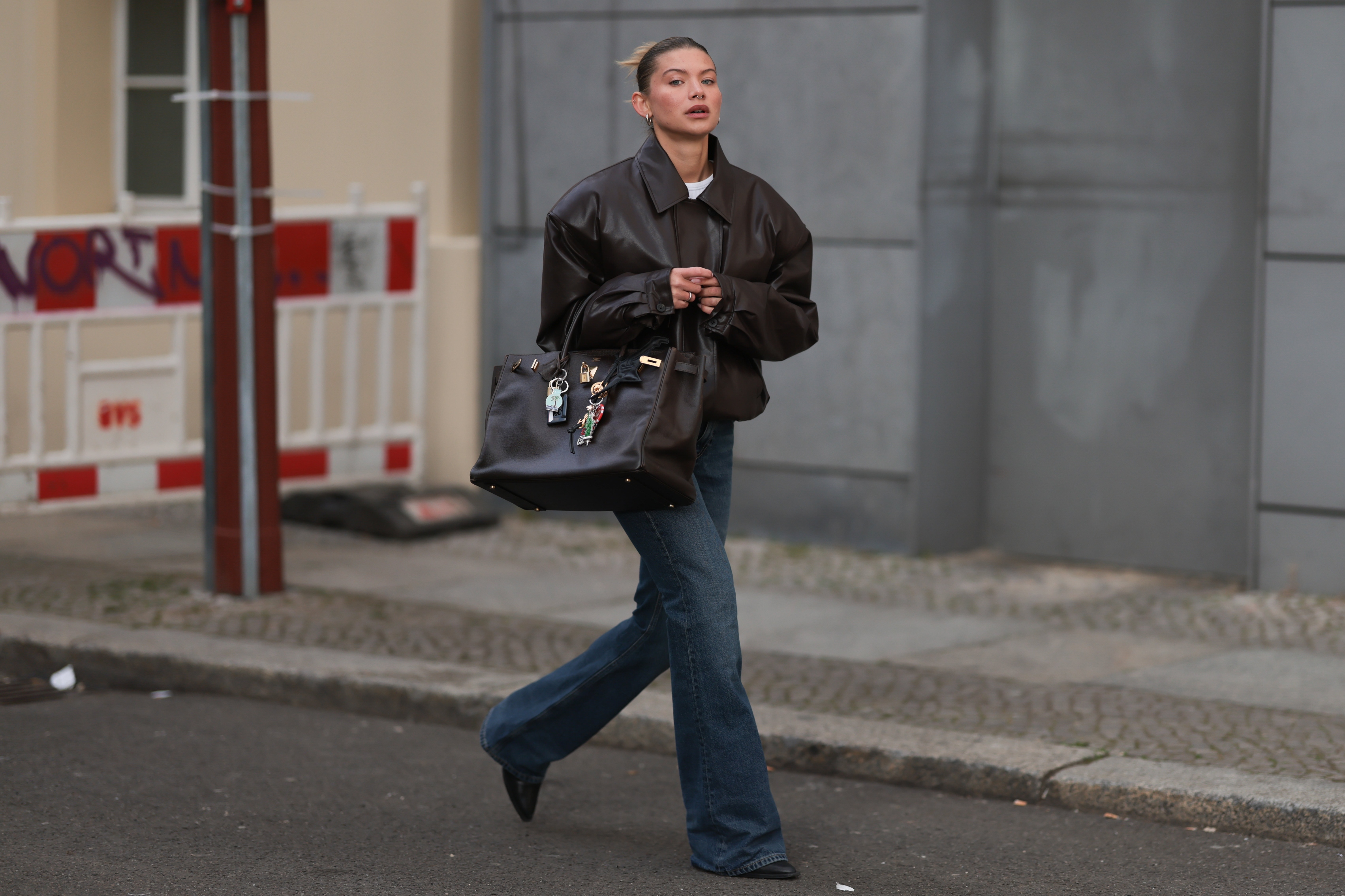 Těžko říct, jestli je to reakce na svět hubnoucí s pomocí Ozempicu, nebo nás k nové siluetě dovedl příbuzný trend flare legín, nicméně novým džínům nelze upřít eleganci ani cool náboj. Zejména když se spojí s tmavým denimem jako je indigo nebo „sepraná“ černá a následně je doplníte jedním ze současných svrchníků. V kombinaci s barn jacket, semišovým sakem, nabíraným bomberem nebo koženou bundou na knoflíky najednou působí „správně“. Ano, přesně tohle chceme na podzim nosit. Retro v novém kabátku – doslova. Podzimní flare navíc nejsou náročné na kombinaci s botami. Díky plné délce k nim unosíte i baleríny, mokasíny, tenisky nebo později třeba kotníkové koně chelsea boots. A ještě zbývá trocha látky i pro případ, že se rozhodnete vyrazit v podpatcích. Jestli vás přiléhavější silueta neláká, není třeba na flare zanevřít. Jak už bylo řečeno, teď letí všechno naráz, takže stále i relaxed verze.