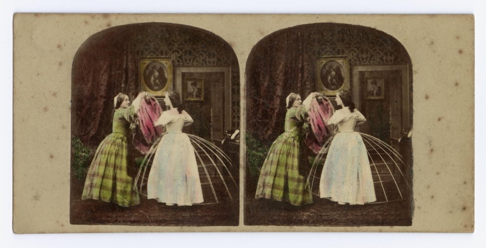 Národní muzeum ve skotském Edinburghu pořádá od června až do listopadu 2015 výstavu s názvem Viktoriánská senzace, v rámci níž jsou vystavovány stereofotografie*, které mají poukázat na absurditu tohoto viktoriánského módního doplňku.