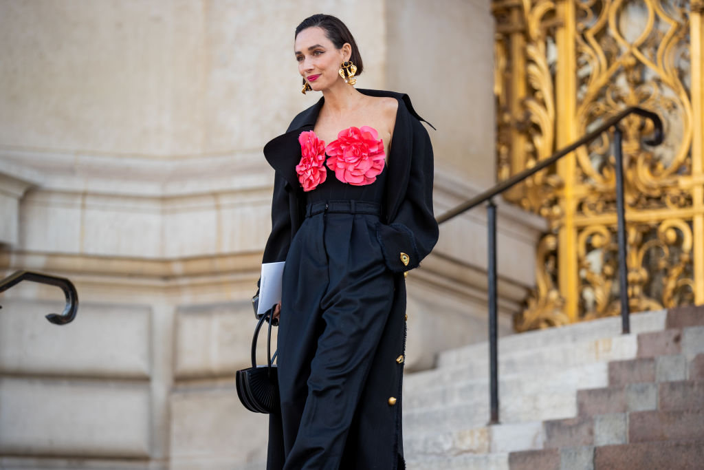 Nutno říct, že se opravdu velké množství outfitů na haute couture fashion weeku v Paříží odehrává v černobílé paletě, tím pádem například outfit Sofie Sanchez De Betak mezi ostatními naprosto zářil. Designérka a influencerka oblékla zářivě oranžový top s nápisem Christian Dior, k němu vzorovanou sukni a modrou kabelku. Venku měla oblečený ještě klasický béžový trenčkot a celý look doplnila černými kotníkovými botami na podpatku.