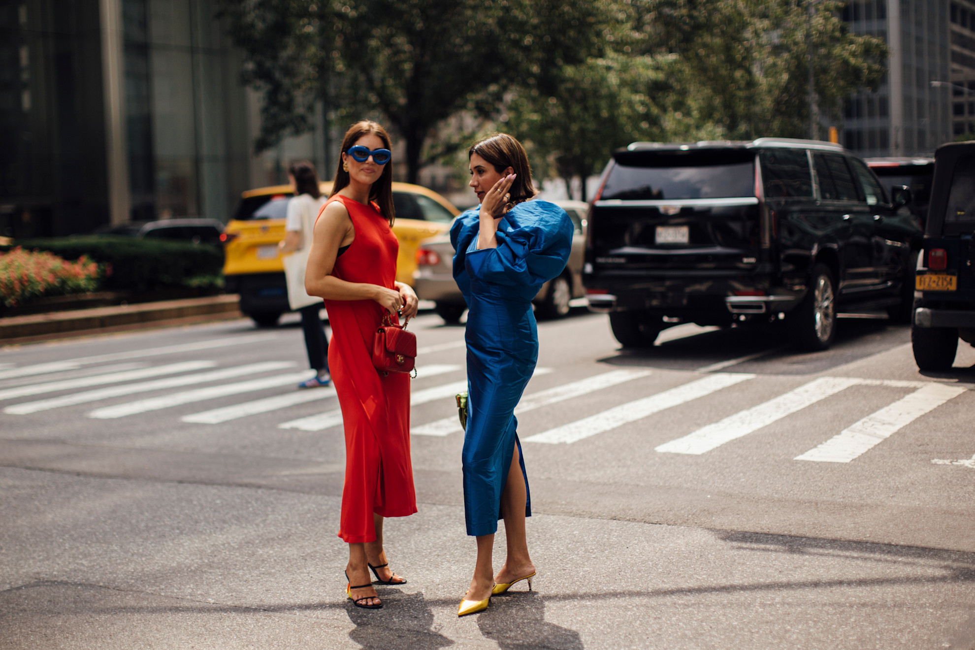 Satén se mačká, ale to je v pořádku. Jemné záhyby látky dodávají modelu autenticitu. Dokonale vyžehlený satén totiž někdy působí až příliš strojeně, lehkou nedbalostí mu dodáte bohémský nádech. Pokud chcete materiál stylingově trochu „zkrotit“, stačí jej kombinovat s něčím, co má osobitý charakter. Může se jednat o vintage kousek, starší kabelku, obnošené džíny. Satén nebude tak slavnostní a začne fungovat přirozeněji. Mimochodem, k saténu se spíš hodí matné boty. Lakované lodičky představují další výrazný prvek outfitu a přes den by tato kombinace vyvolávala módní konkurenční boj.