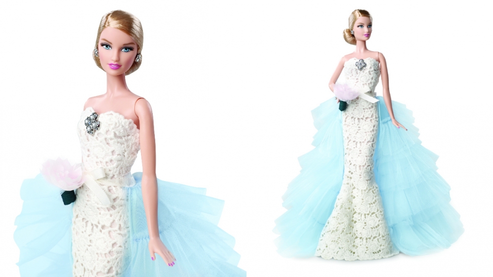 Oscar de la Renta je v módním světě jménem jedním z nejuznávanějších a jeho (nejen) svatební šaty jsou legendou stejně jako on sám. Firma Mattel a tento módní dům tedy spojily síly a vznikla tak exkluzivní edice panenky Barbie, která je oblečená právě do šatů značky Oscar de la Renta. Unikátní sběratelský kousek je inspirovaný svatebním lookem a tradicí, proto jsou odstíny šatů laděny do modra.