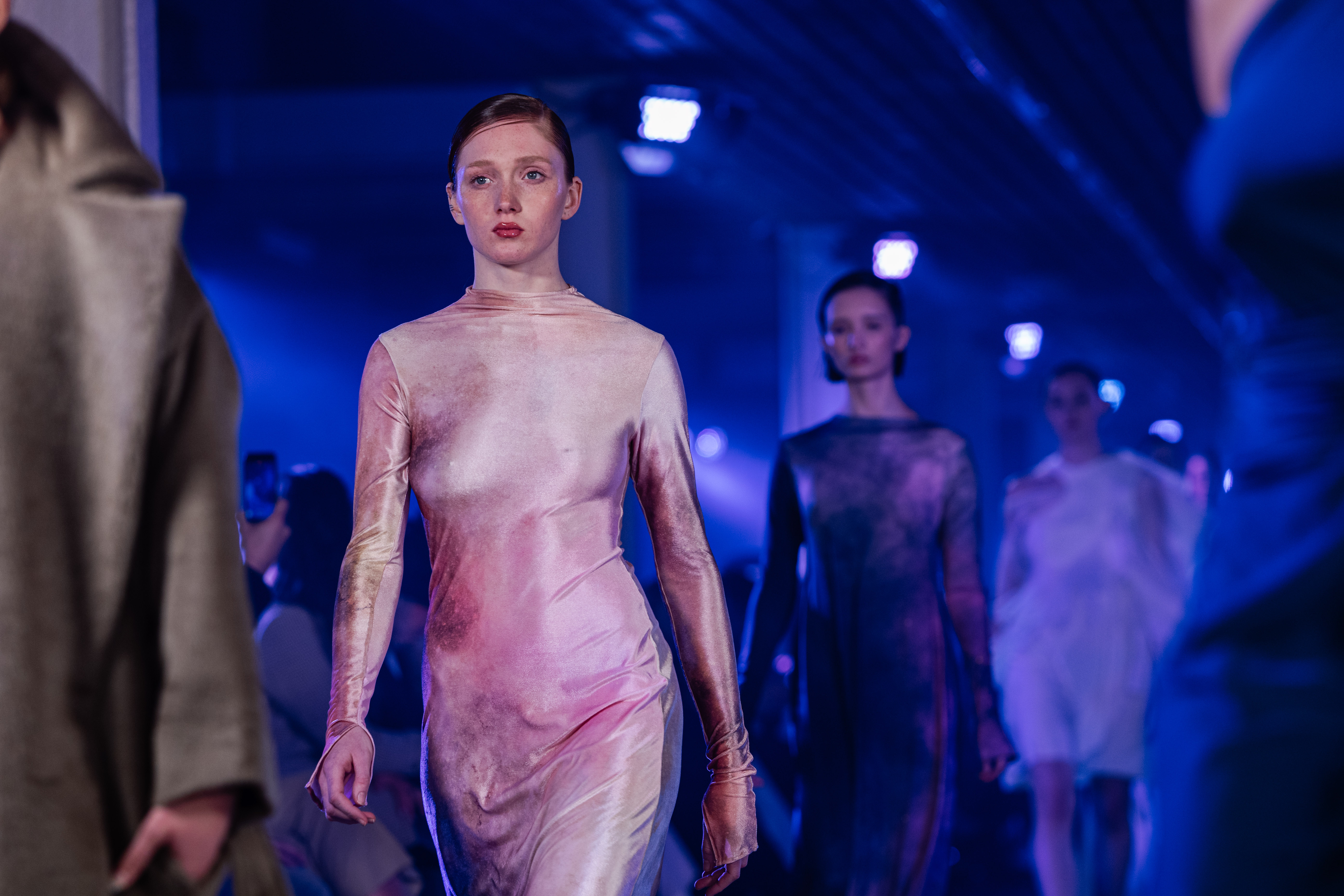 Hlavní přehlídkovou část fashion weeku zakončila návrhářka Denisa Dovala s kolekcí Born From Stars. Jak už název napovídá, inspirovala se krásou hvězd, kalhotový kostým či splývavé asymetricé šaty zdobily třpytivé kamínky a autorský potisk modelů připomínal vesmírnou mlhovinu. Kromě střihově minimalistických modelů ale Denisa vytvořila i bohatější černé a bílé šaty s volány a objevil se i cihlově červený overal. Kabáty z kašmíru v béžovém a krémovém odstínu pak představují v symbolice kolekce návrat na Zem.
