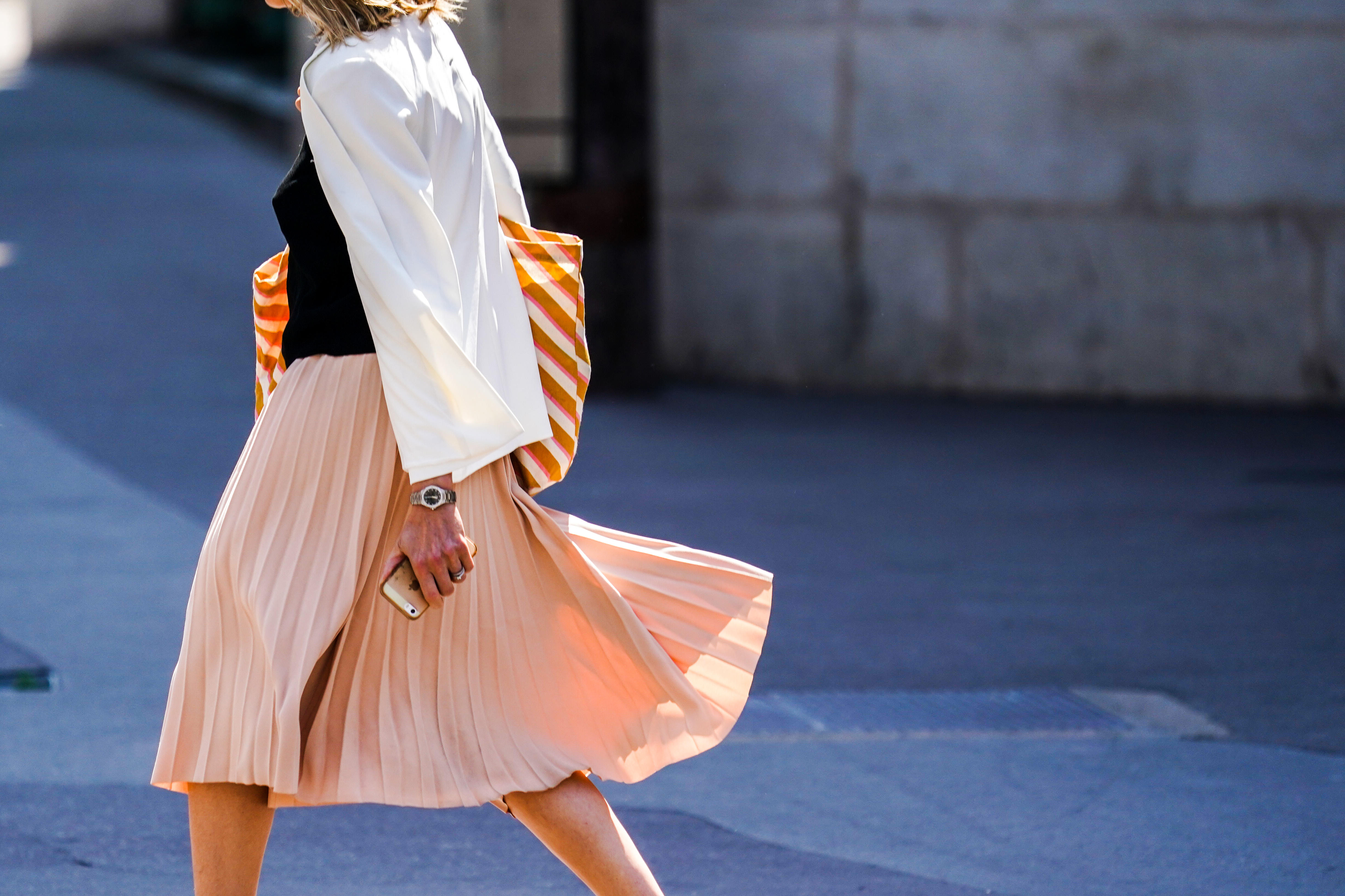 Plisované sukně se před několika lety vrátily do módy a je jisté, že je ještě pár let nosit nepřestaneme. Pro vzorovanou můžete vyrazit do obchodů Desigual, pruhovanou v pastelových barvách najdete u britské značky F&F a zářivě oranžovou v Marks & Spencer. Nejlépe plisované sukně vypadají v midi délce s lodičkami, sandálky, či pantoflemi na podpatku.