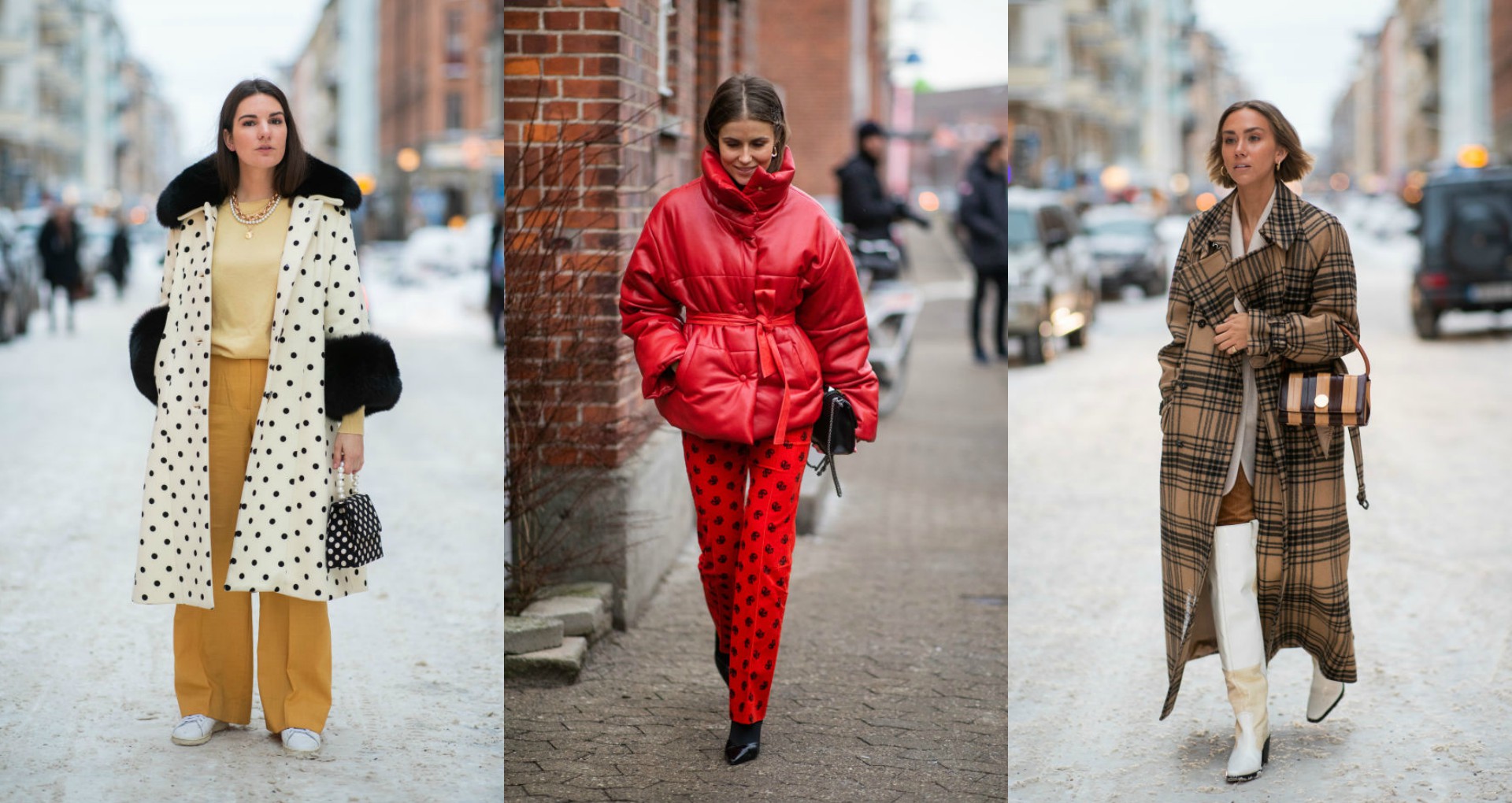 Chladné počasí neznamená, že musíte celý hezky sladěný outfit schovat pod kabát. Proto existuje vrstvení! Ve Stockholmu a Kodani právě letí pastelové kalhotové kostýmy a šaty vykukující pod zimními kabáty.