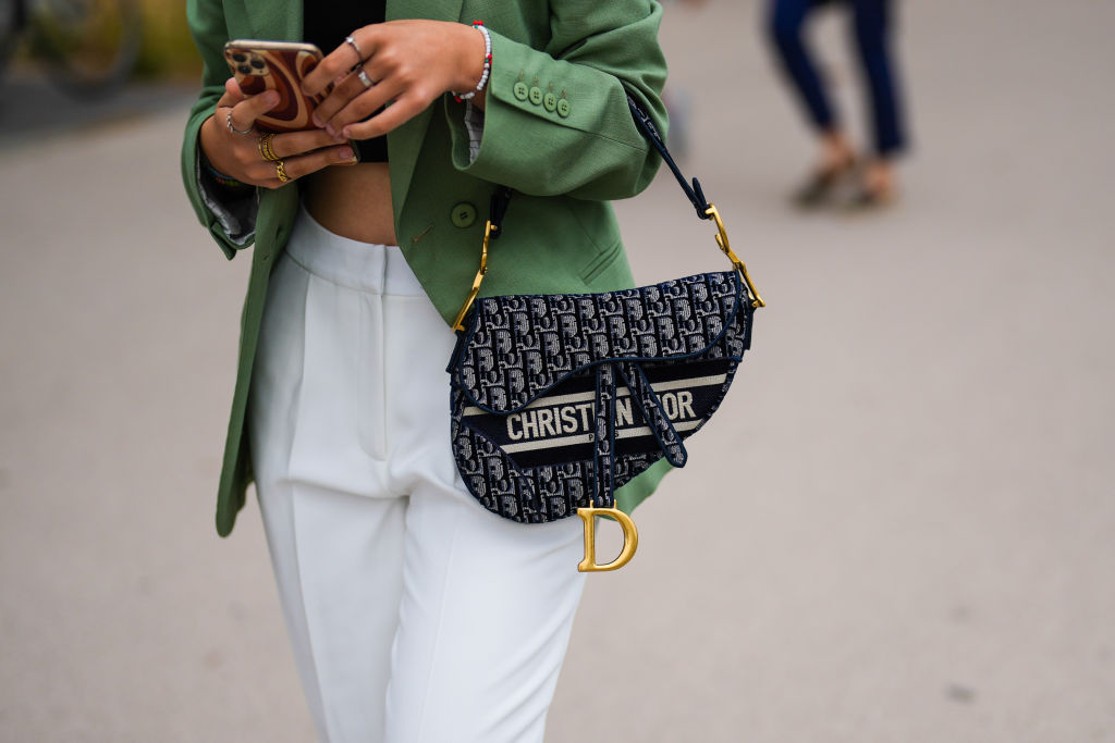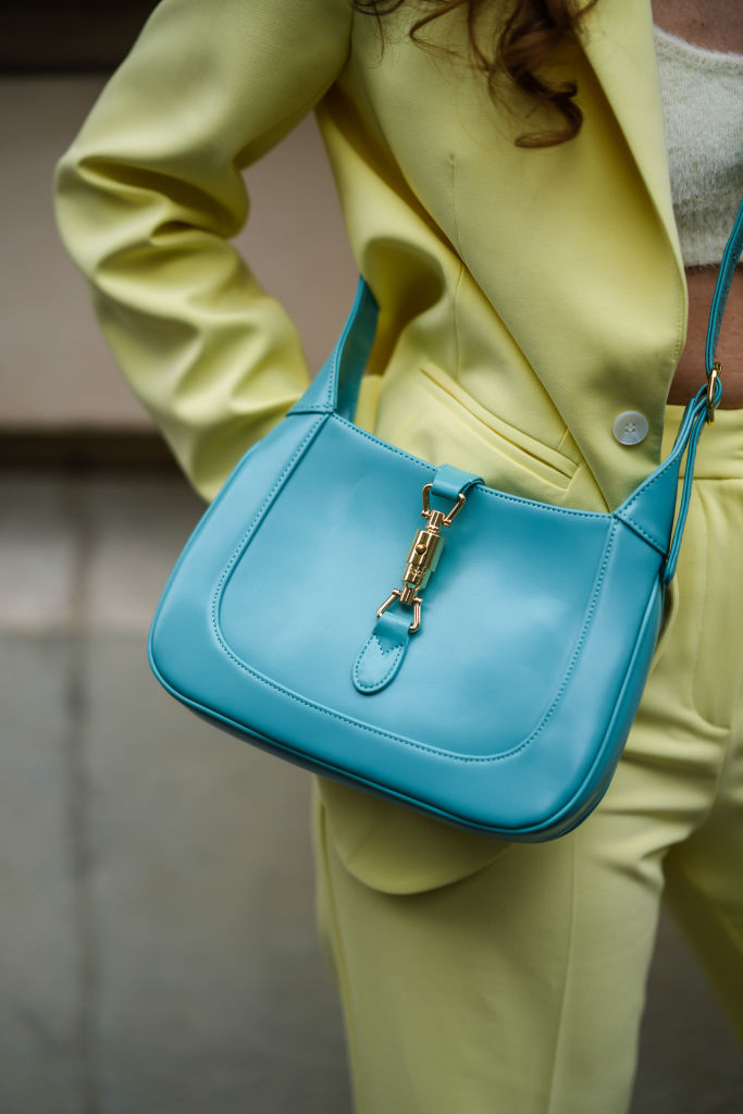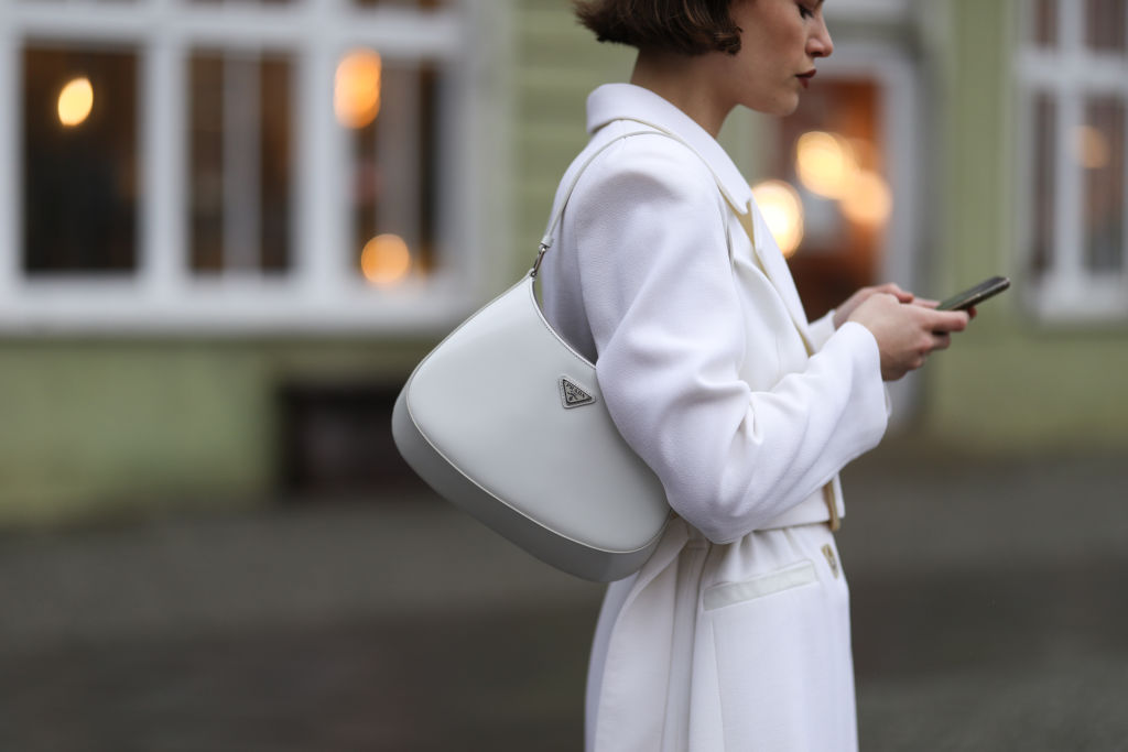 Sarah Jessica Parker coby Carrie Bradshaw při natáčení seriálu And Just Like That... s kabelkou Fendi Baguette