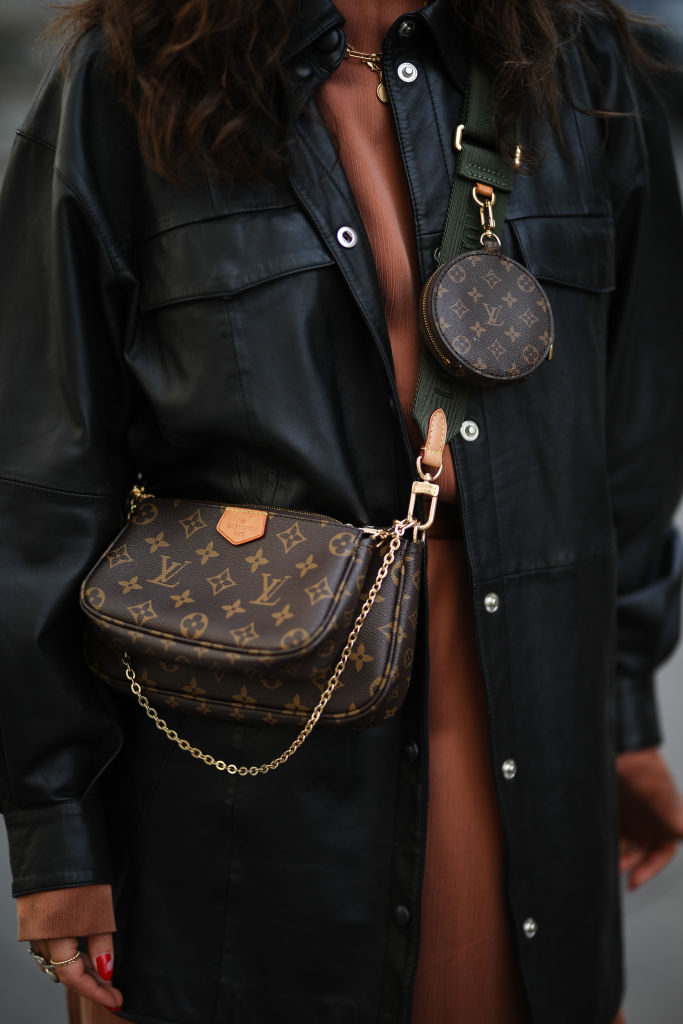 Sarah Jessica Parker coby Carrie Bradshaw v seriálu And Just Like That... s kabelkou Fendi Baguette ve variantě s fialovými flitry