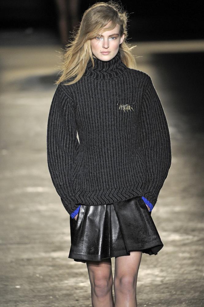 Hitem letošního podzimu a zimy jsou svetry s vysokým rolákem, který zahalí krk, a svetry se šálovými límcy. Máte-li doma ve skříni staré svetry z 80. let s ramenními vycpávkami, klidně je vyndejte – jsou teď opět v kurzu. V nových kolekcích najdete spousty svetrů z mohéru, který je nejžhavějším materiálem této sezony. Líbí se vám kombinace látky, semiše a kůže? I takové svetry letos v nabídce najdete.