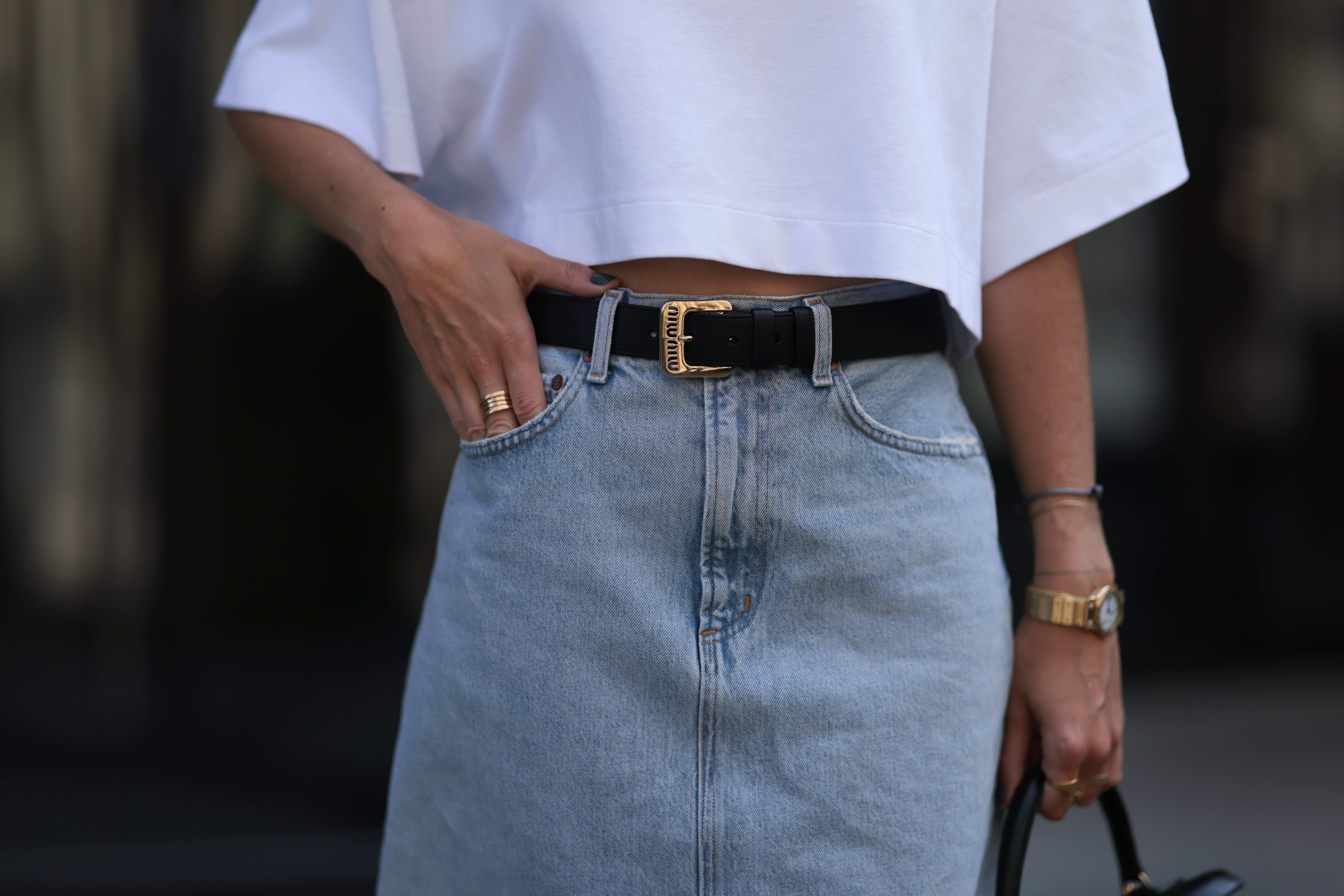 Styling džínové sukně může být opravdu jednodušší, než se zdá. Stačí bílé triko, kecky, případně nějaká lehká bundička navrch. Opravdu zkrátka to, co byste si vzaly k džínám. Pak nasaďte sluneční brýle, pár šperků, doplňtě optimálně barevnou mini kabelku a je to.