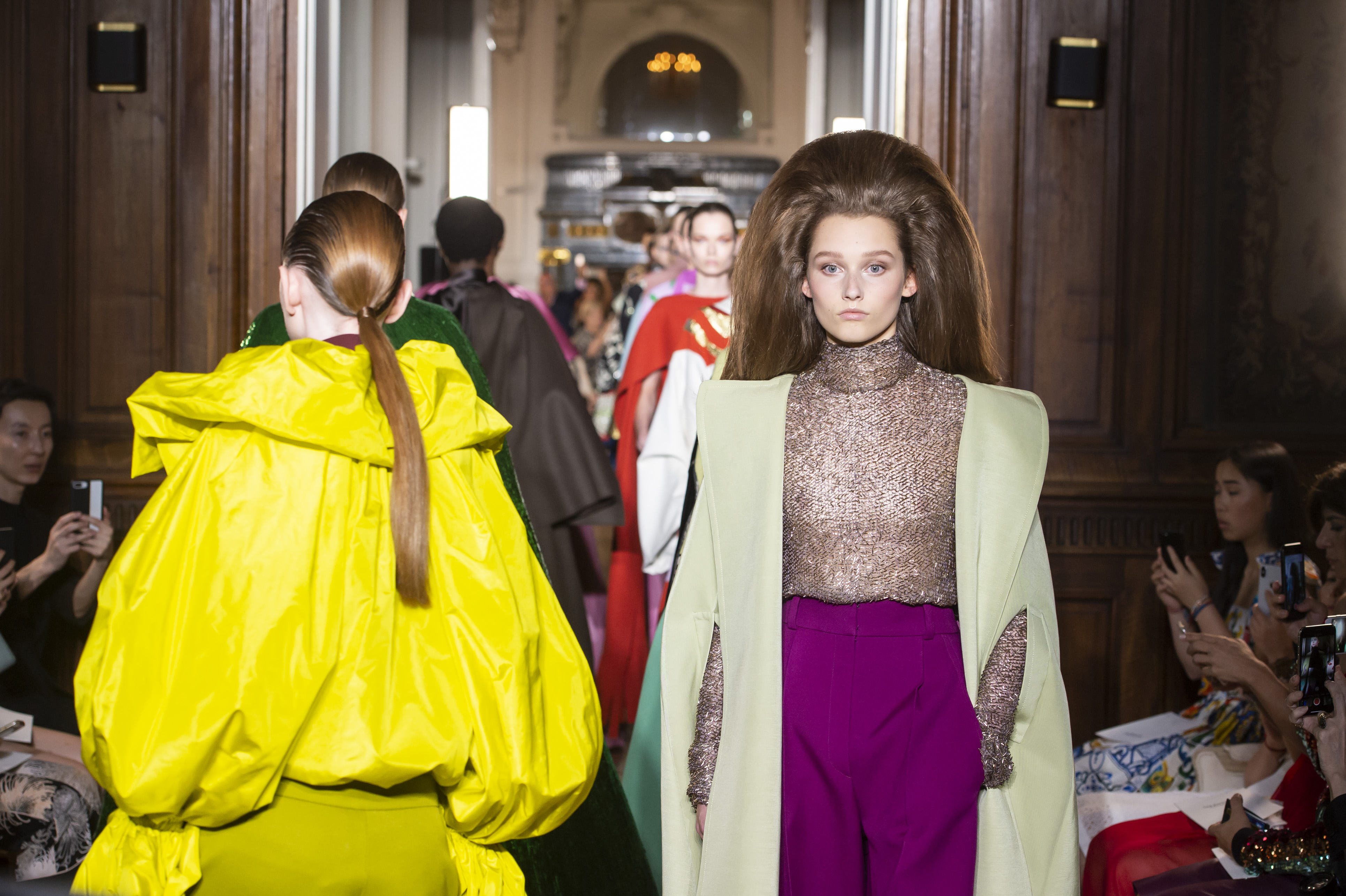 Nezapomenutelnou přehlídkou naopak díky své kráse byla na pařížském haute couture fashion weeku v červenci ta od značky Valentino. Výrazné i metalické barvy, oversized střihy, natupírované účesy ve stylu šedesátých let a elegance pro Valentina tolik typická provázela celou přehlídku.