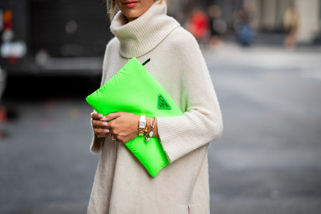 Pokud se necítíte na neony od hlavy až k patě, pak se bude hodit styling, se kterým přišla už v minulé sezoně značka Marc Cain. Jejich pojetí béžového kabátu doplněného neonově zeleným rolákem bylo trefou do černého a začalo se hojně objevovat v ulicích světových metropolí během fashion weeků. Jde o univerzální kombinaci barev, kterou unosíte na jaře a v zimě, stačí vyměnit zimní kabát za nesmrtelný béžový trenčkot nebo blejzr v camel odstínu.