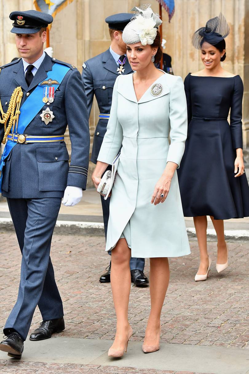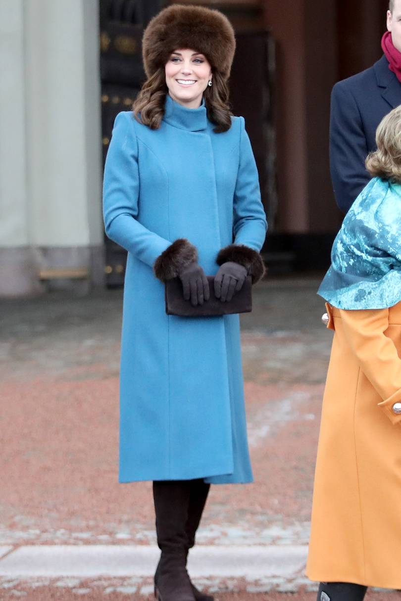 Kate miluje Alexandera McQueena a tento kabátek od něj má dokonce ve třech barvách. Tento světle modrý oblékla na nějakou významnou událost už počtvrté.