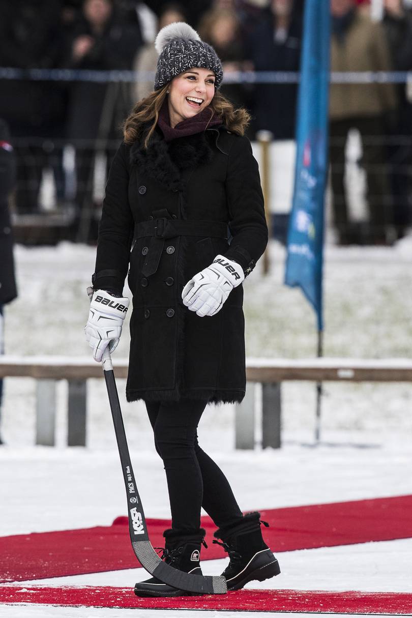Návštěva Švédska si hraní hokeje přímo žádá, a tak ani vévodkyně z Cambridge nezůstala pozadu.