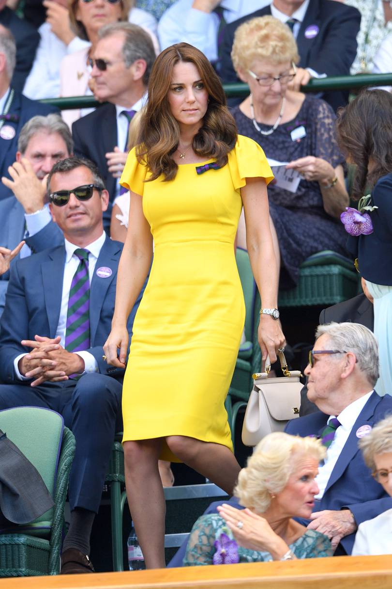 Na tenisový turnaj ve Wimbledonu Kate zvolila zářivé žluté šaty od Dolce & Gabbana.