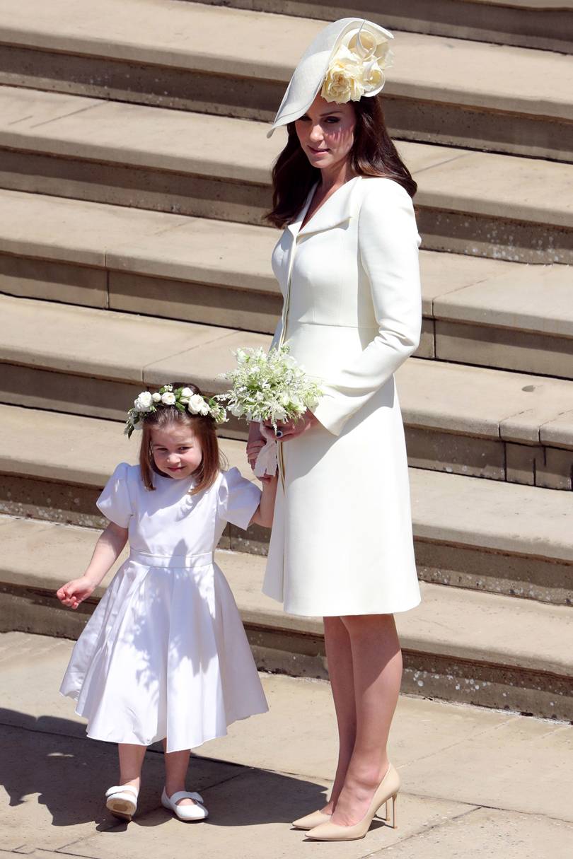 Svatba Harryho a Meghan a Kate s dcerou Charlotte. Kate opět vsadila na Alexandera McQueena s kloboukem od Philipa Treacyho a nude Jimmy Choo lodičky. Nemůžeme se na ní vynadívat.