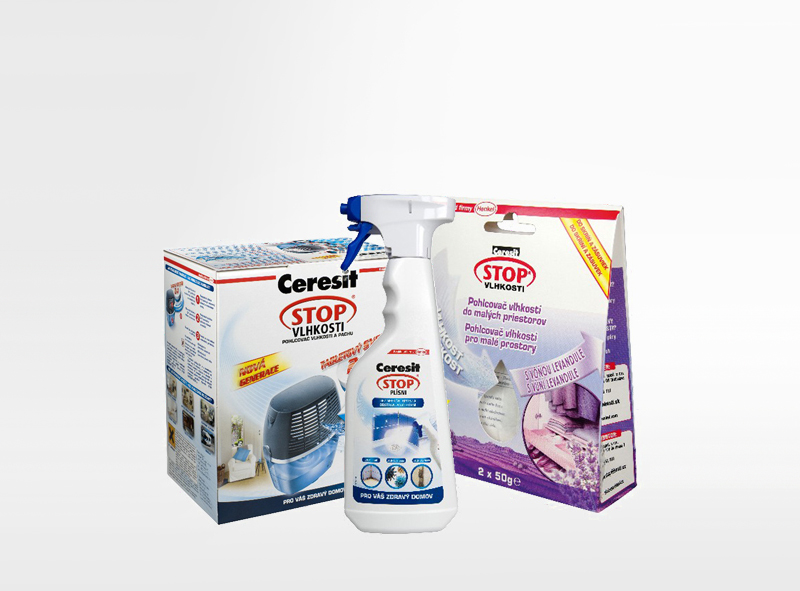 Plíseň v bytě či domě není nic příjemného. Plísně ohrožují naše zdraví a mohou způsobovat celou řadu onemocnění. Mezi nejčastější patří alergie, astma a dýchací obtíže, trávicí problémy, bolesti hlavy, podrážděnost očí a nevolnost. Je proto důležité udržovat doma optimální vlhkost, aby se plísně nemohly množit. Vzniklých plísní se můžete zbavit pomocí přípravku Ceresit STOP PLÍSNI. Jestliže ovšem máte doma vyšší vlhkost, plíseň se po určité době vrátí. Proto je vhodné tento problém řešit pomocí praktického pomocníka CERESIT STOP VLHKOSTI, který pomocí unikátních dvouvrstvých tablet optimalizuje vzdušnou vlhkost.