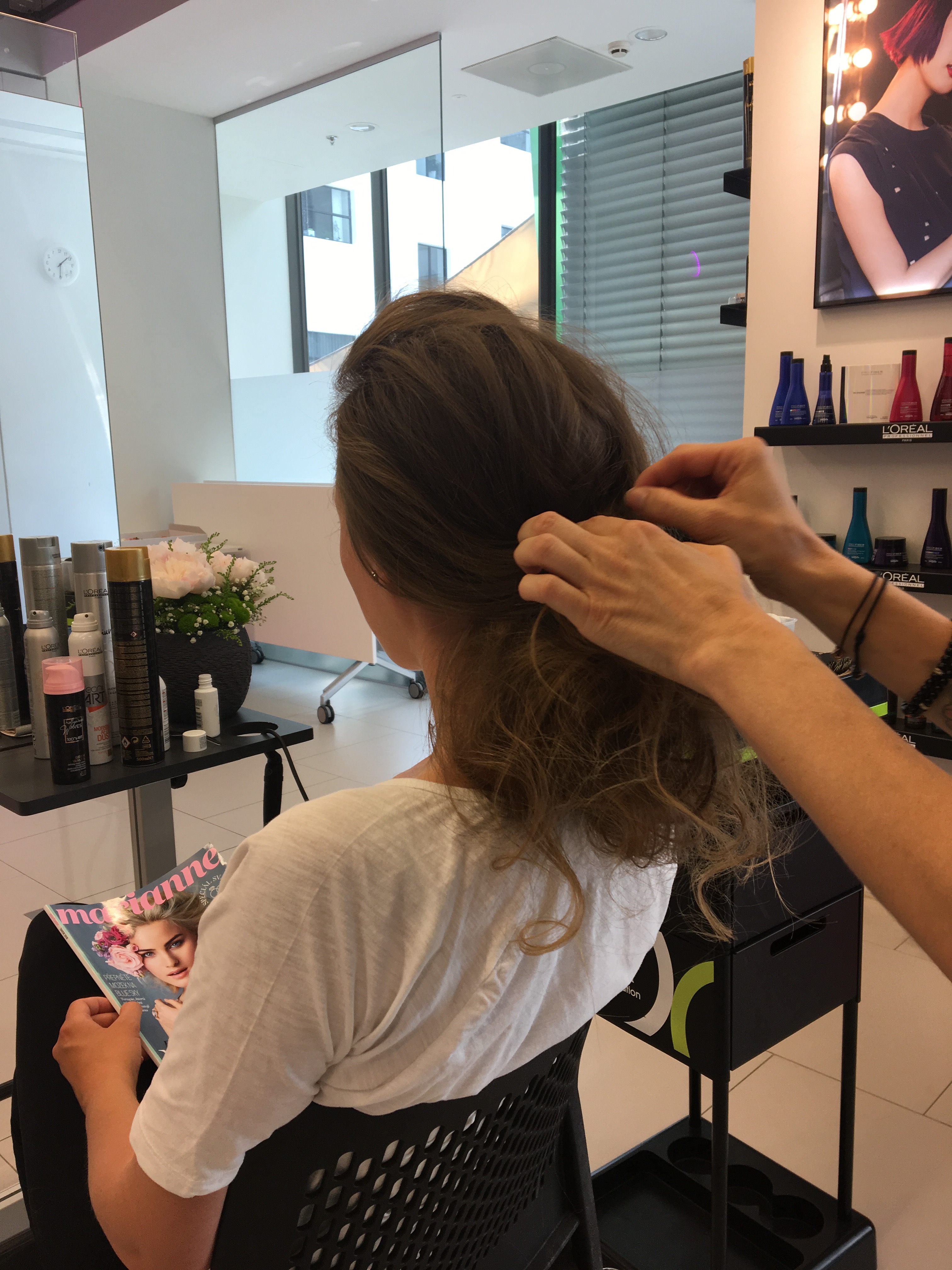 Klára se s kadeřnicí Mishou dohodla na povoleném drdolu, který bude doplněn o živé květy... jak v něm vypadala? Misha nejdříve vlasy natočila na kulmu, aby jim dodala objem a přidala produkt, který vám obrátí svět vzhůru nohama – objemový pudr Super Dust od L‘oréal Professionnel.