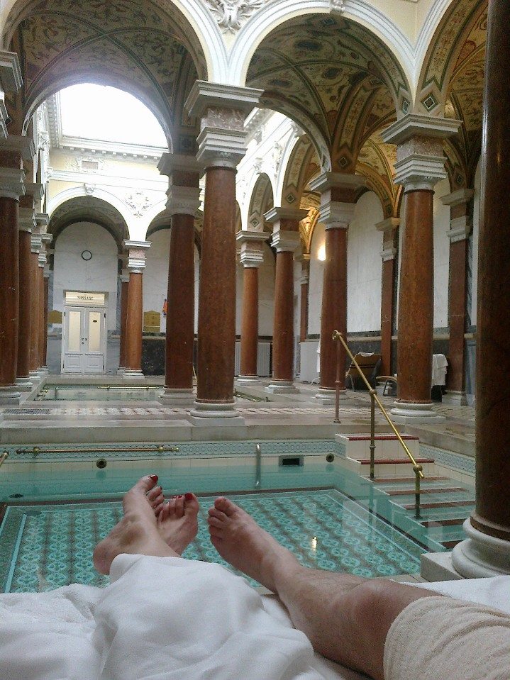 Když už tak už, řekla jsem si a dopřála ještě jeden luxusní zážitek, koupel pro dva v minerální vodě v další historické místnosti z roku 1896, kam chodí lázenští hosté na procedury. Bublinky přírodní minerálky mě pokryly tak, že jsem vypadala ve staré vaně jako šedá myš, se zájmem jsem je pozorovala stejně jako bublinky ve sklenici sektu, který je součástí partnerské koupele.