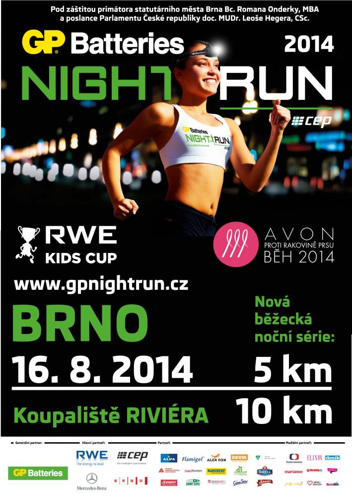 V jihomoravské metropoli se 16. srpna 2014 chystá již třetí zastávka nového seriálu nočních běžeckých závodů GP Batteries Night Run 2014. Předchozích závodů v Hradci Králové a Ostravě se účastnily stovky nadšených běžců různých věkových i výkonnostních kategorií, kteří si vychutnali atmosféru potemnělého města. A velký zájem očekávají organizátoři i od Brňanů.