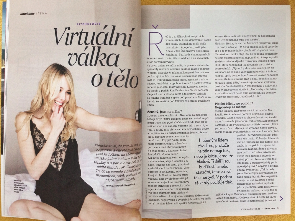 Řeč je o urážlivých až vulgárních komentářích, které doprovázejí každé kilo navíc, pupínek na tváři, dolík na stehně… A je jedno, jestli jste Adele, Jitka Čvančarová nebo Kiera Knightley. Tzv. body shaming neboli fenomén zostuzování těla v médiích a na sociálních sítích se vám nevyhne.