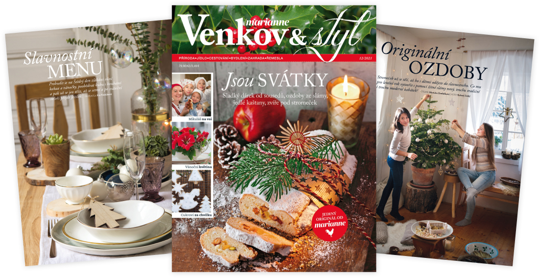Prosincové číslo Marianne Venkov & styl je v prodeji od 25. listopadu. Časopis si nyní můžete také snadno objednat. Přijde vám do schránky, aniž byste platili poštovné. Více se dozvíte ZDE.