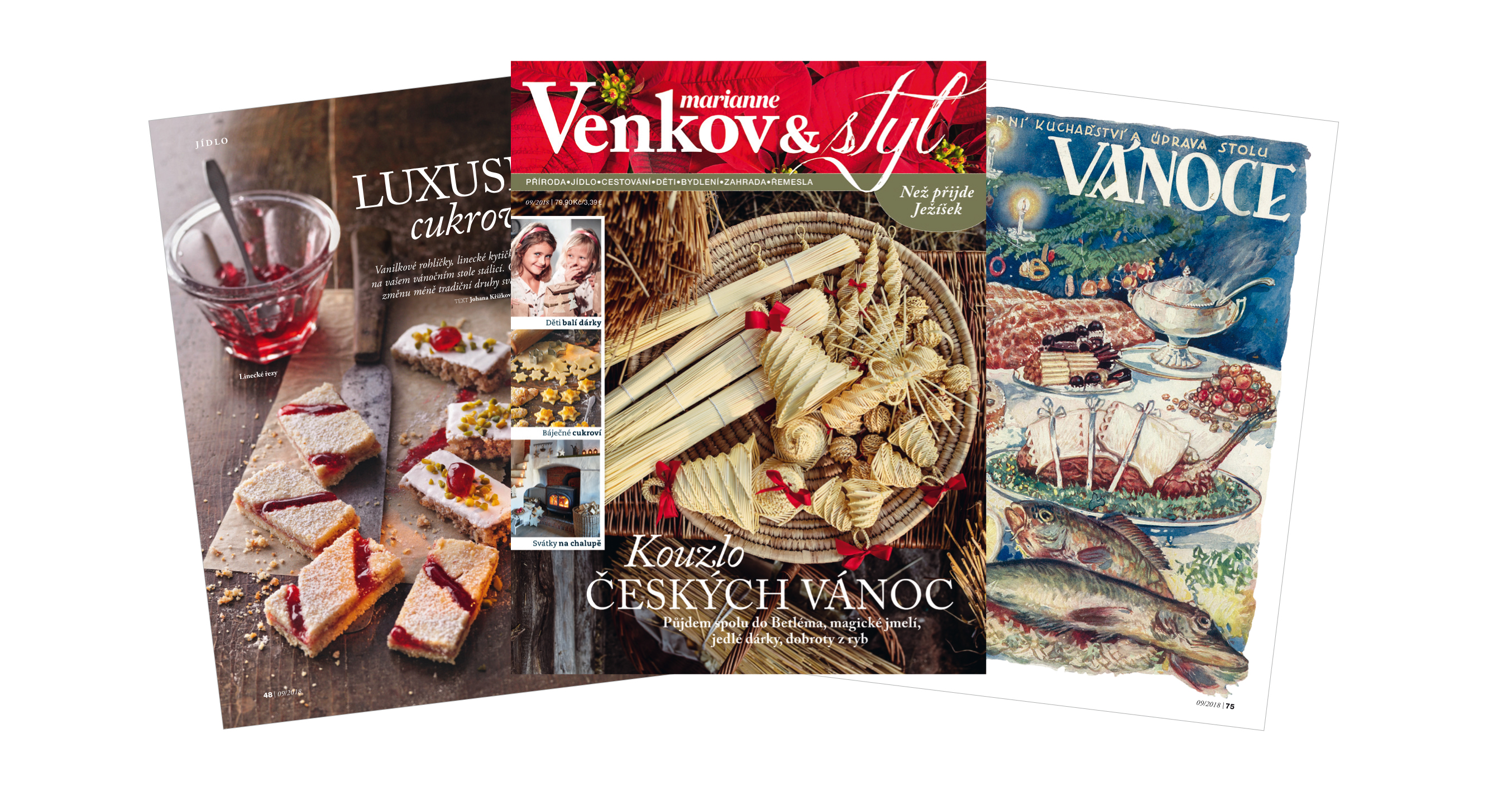 A protože Vánoce bez cukroví a ryby by nebyly ty pravé, české, najdete tu i zajímavé recepty, které určitě stojí za to vyzkoušet i nostalgickou vzpomínku na to, jak se slavily svátky téměř před sto lety. Provedeme vás také romantickou zahradou Terezy Bartulcové pod Hukvaldy, seznámíme s kořeny lidového betlémářství a pozveme na návštěvu několika nejkrásnějších betlémů i na spoustu dalších akcí, které si můžete dosyta užít jen v adventním čase.