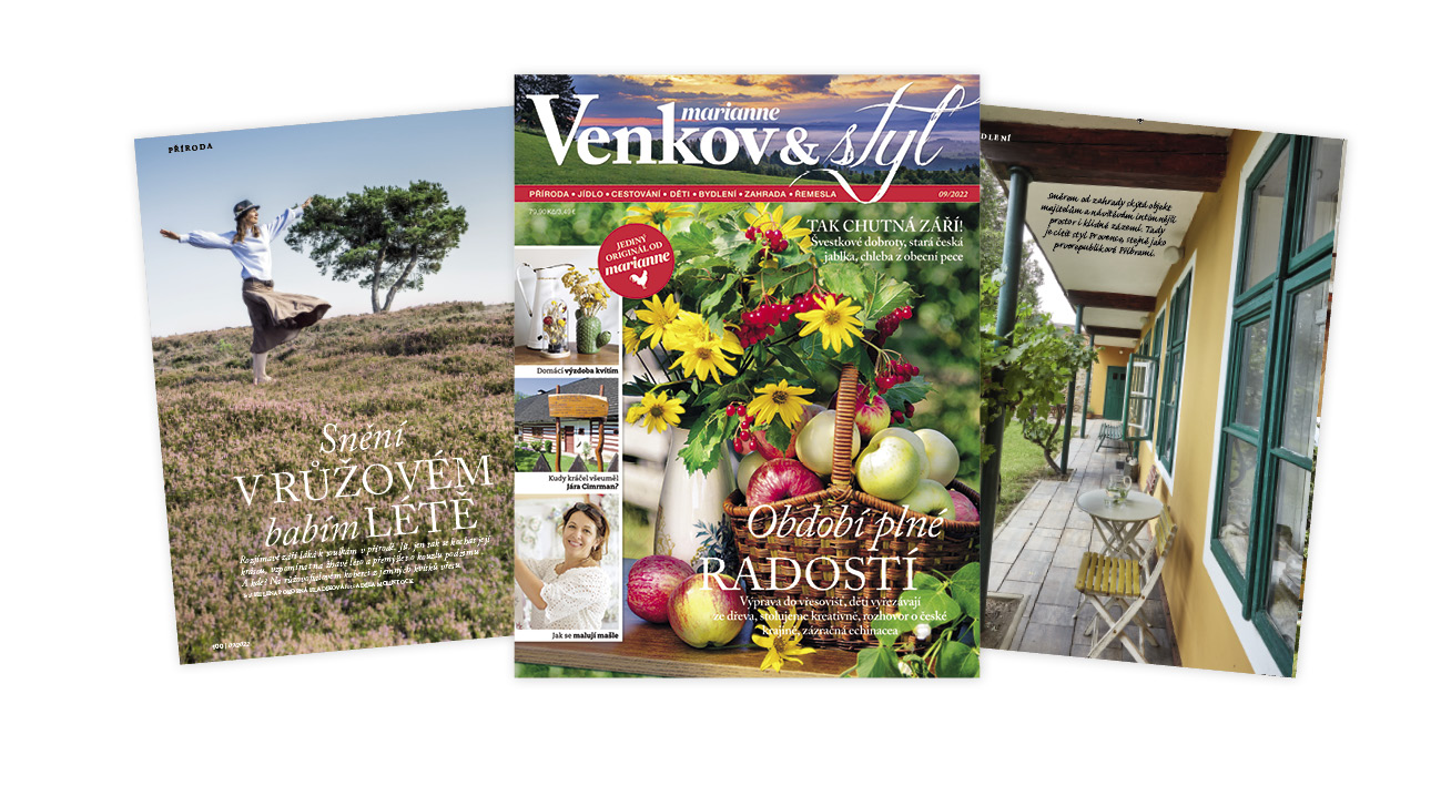 Čas velkých prázdnin a letního volna skončil - čas výletů, venkovních zábav a aktivit nikoli. Ty sílí, ač síla slunečních paprsků slábne. Dožínky, vinobraní, poutě, koncerty venku… i trhání jablek v sadech patří k září. A září s babím létem zpestří časopis Venkov & styl neotřelými tématy i představením zajímavých lidí a to ve stálých i nových rubrikách!