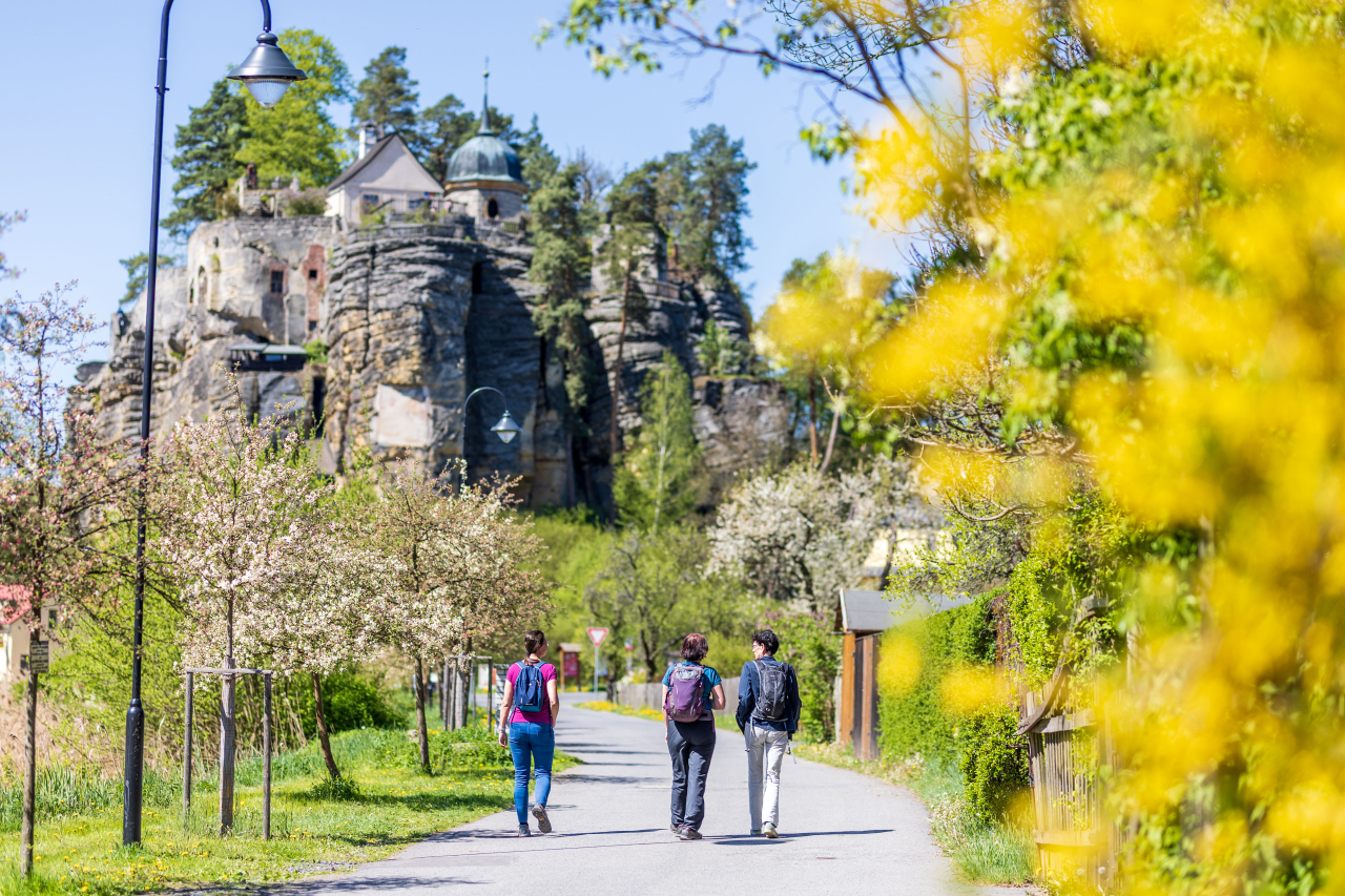 Dominantou obce Sloup v Čechách je mohutný pískovcový blok vysoký zhruba 35 metrů. Do něj se lidé už od 13. století postupně zakusovali, tesali místnosti, schodiště i kaple. Výsledkem je skalní hrad, který působí spíš jako labyrint než klasická pevnost. Interiéry nejsou plné vitrín a dlouhých textů. Tady vás víc než exponáty zasáhne samotný prostor. Úzké chodby, točité schody a místnosti hluboko ve skále mají syrovou energii. A když vyjdete nahoru, otevře se vám výhled na okolní lesy a pískovcové věže. Najednou pochopíte, proč si tohle místo vybrali právě tady. Zajímavostí je i fakt, že se tu natáčela známá pohádka S čerty nejsou žerty. Schody do nitra skály jsou fanouškům až podezřele povědomé. Jenže realita je ještě silnější než film. Atmosféra hradu Sloup funguje bez kulis a efektů. Hrad bývá otevřený od jara do podzimu, v hlavní sezoně denně. Aktuální informace najdete na oficiálních stránkách, vyplatí se je před cestou zkontrolovat.