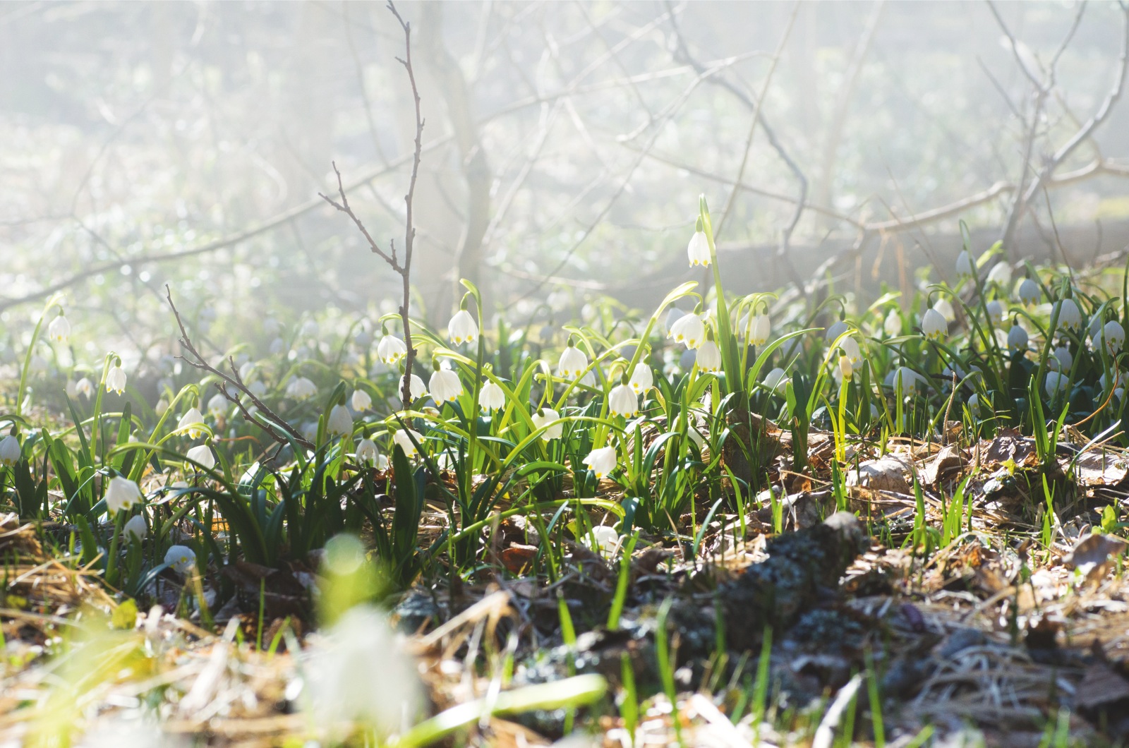 Uprostřed lesa zahaleného hebkou mlhou nesvětélkují bludičky, jak by se mohlo na první pohled zdát, ale zářivé květy bledulí, které v šeru po jasany a olšemi vyzvánějí jaru na pozdrav.